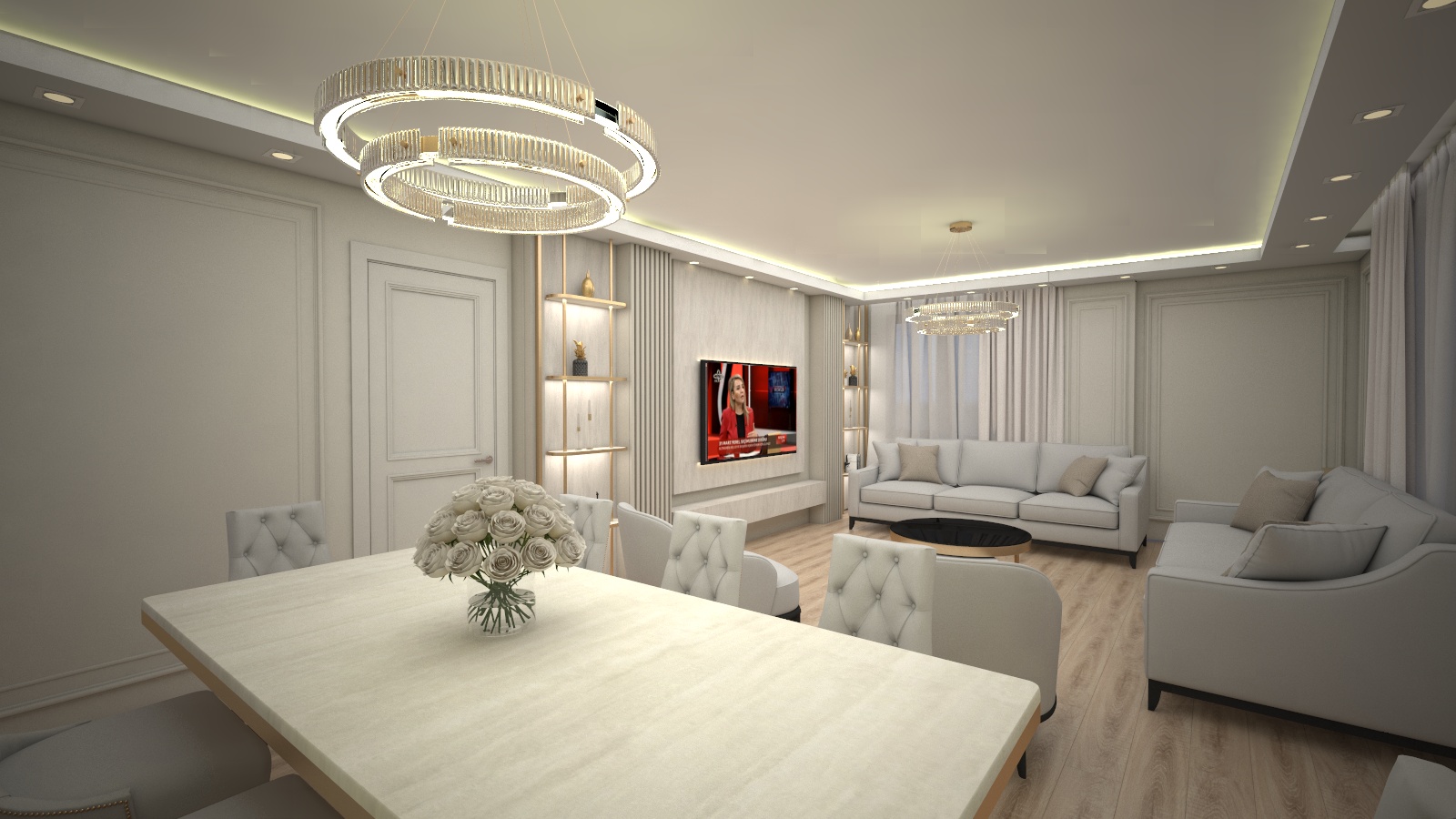 do not change the design layout furniture materials dimensions or camera angle do not add or remove any objects do not modify the architectural model in any way only improve lighting color balance reflections and material realism material realism enhance material depth and micro texture details improve surface realism with subtle imperfections add soft natural reflections on glossy and semi gloss surfaces keep original material colors exactly the same do not turn materials pure white lighting create a soft natural daylight atmosphere add gentle warm sunlight entering from the window very subtle use balanced exposure avoid overexposure avoid flat white lighting maintain soft shadow transitions add realistic global illumination color temperature slightly warm neutral around 4200k 4800k no harsh yellow tone no cold blue tone color grading increase depth and contrast slightly add mild warmth for a cozy inviting atmosphere preserve original color palette avoid washed out whites avoid overly bright highlights mood warm elegant high end residential atmosphere realistic interior photography look luxurious but natural looks like a professional v ray corona render with balanced warmth