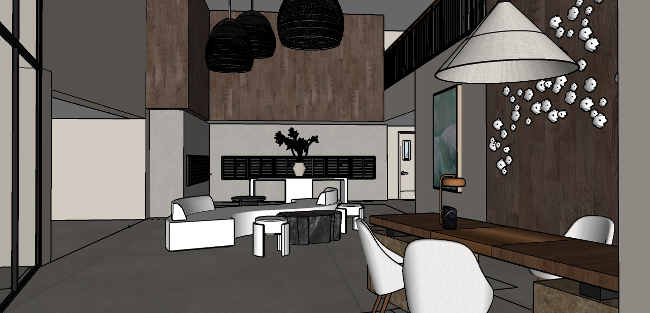 renderas hand sketch match style as reference image slight rustic wood texture and color tone but no color anywhere else ceiling to show 24 60 act tile