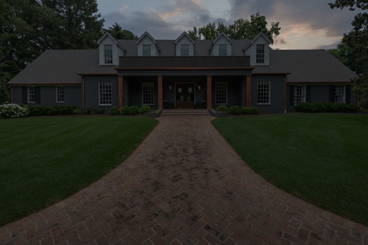 i want to paint this brick randolph stone paint from benjamin moore and add copper gutters and more modern operable shutter on all the windows i want square cedar columns with corbels