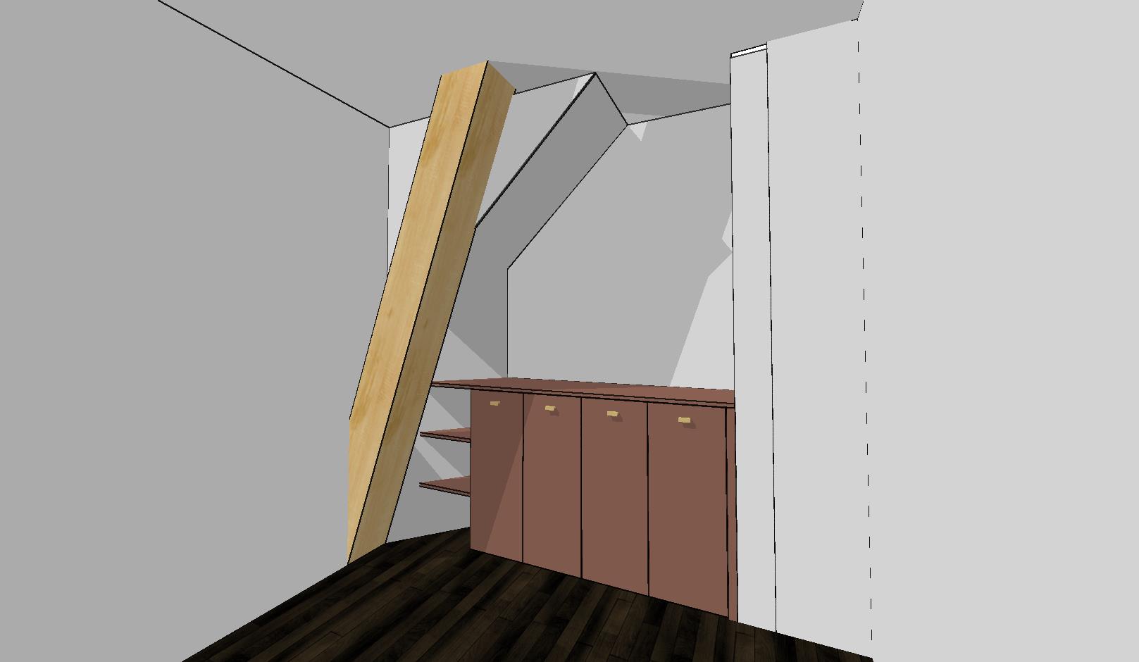 ajoute une tringle centr e sur le mur du fond et pench e avec la m me orientation que la sous pente