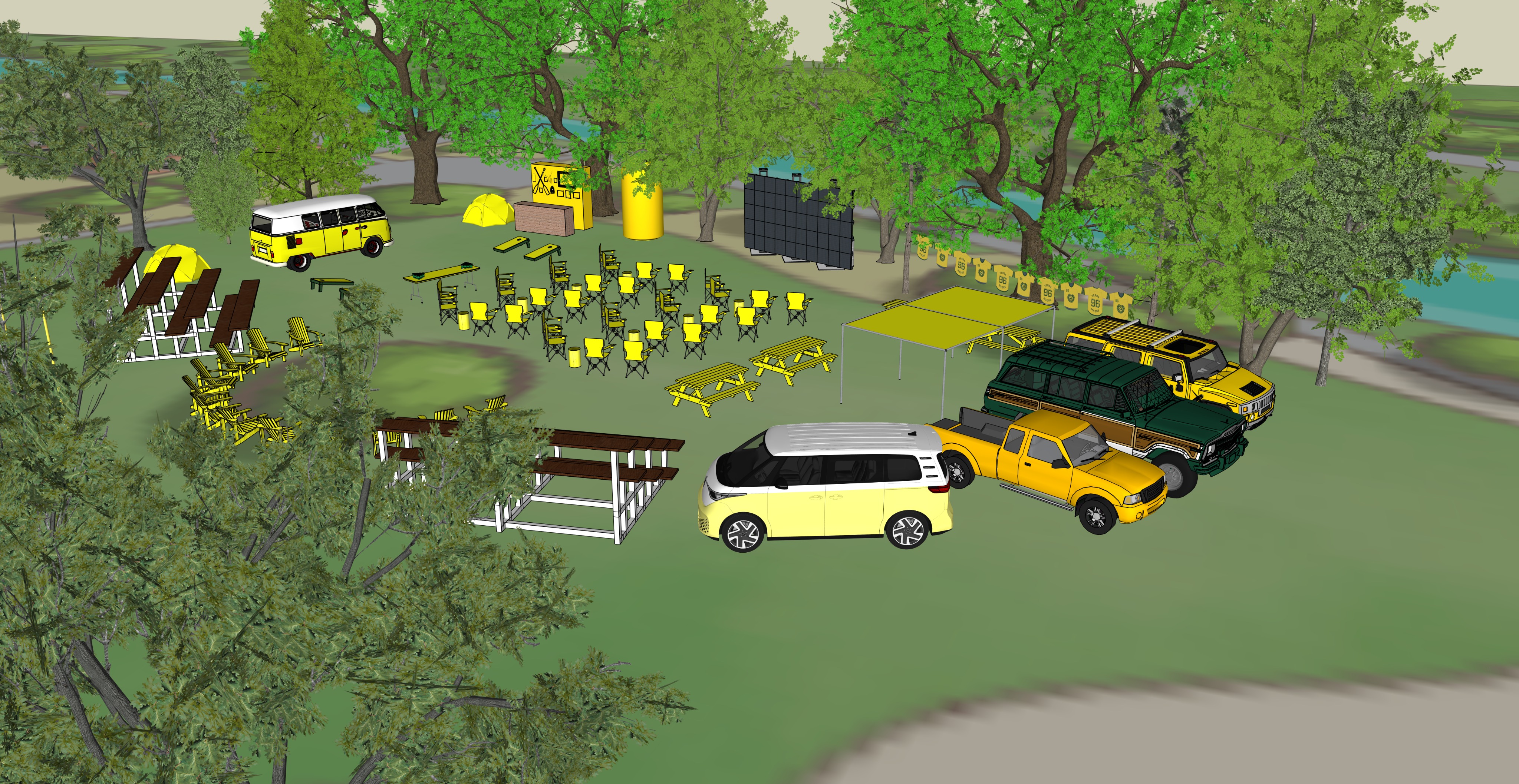 setup up this tailgate event in the woods set at oak canyon ranch in california set in deep oak trees make the surrounding area lush with lost of foliage and