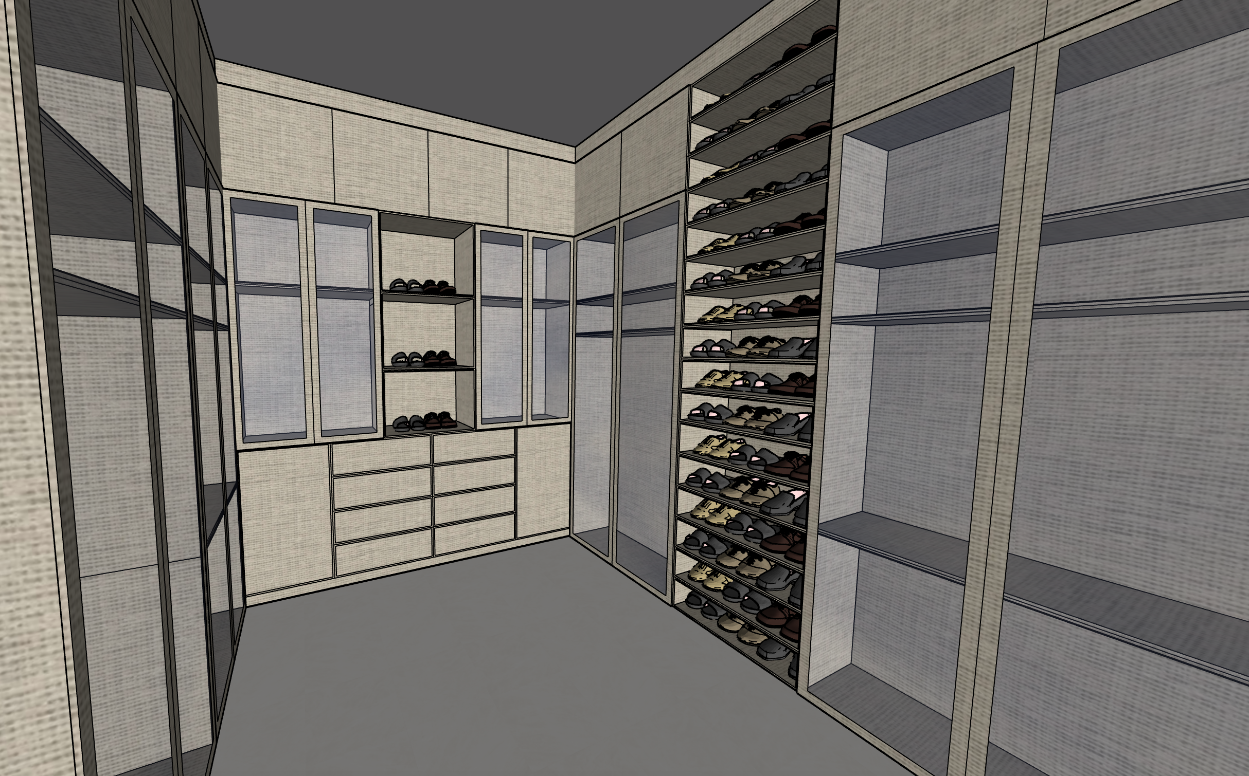 floors are an ivory matte porcelain there s led lighting in the cubbies and railings hangers in the taller cubbies add recessed lighting to ceiling