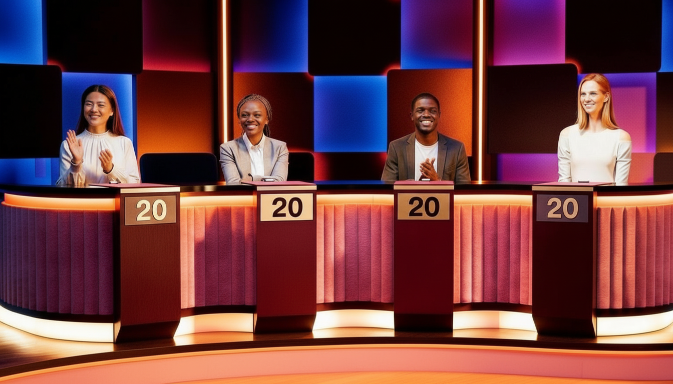 the black squares in the background are blue each individual square in the background consists primarily of blue with purple pink and orange tones the shadows are black the entire image is more saturated the vertical led line in the background emit an orange light the light under the desk have a warm glow vibrant colors highly saturated high contrast the color of the desk will be retained increase color saturation enhance contrast make the colors more vibrant while maintaining the architectural forms the light on the persons face remains the same as in the original photo do not change or add new structural elements there is no floor no dark shadow in the back no black in the background