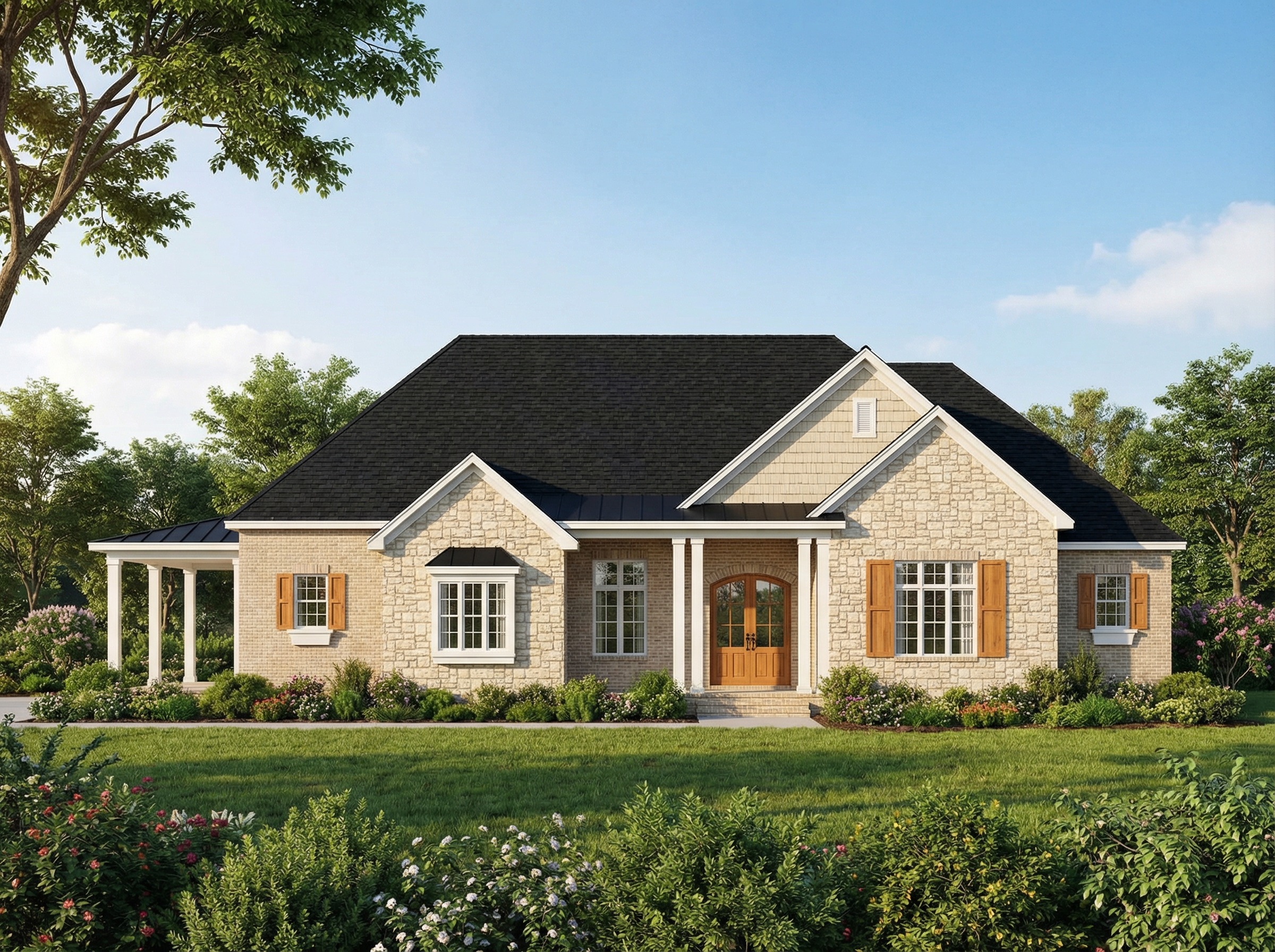 create a more three dimensional perspective of this home keeping the materials and colors as they are i m just looking for a little more detail