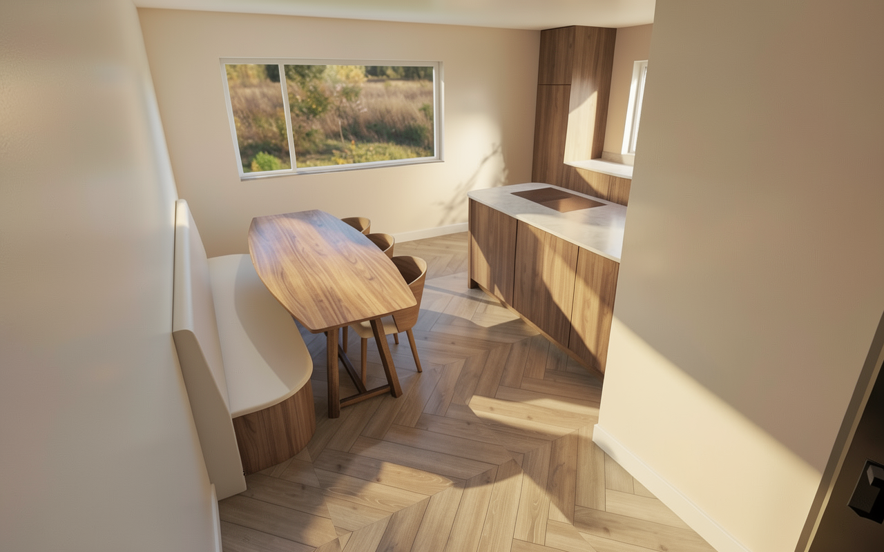 create a high quality realistic interior render of the given view while strictly preserving all existing materials textures finishes and color palette exactly as provided do not modify replace or enhance any colors furniture surfaces or design elements add concealed cove lighting integrated into the ceiling emitting a soft even indirect glow that subtly enhances spatial depth without altering the original ambience or tones provide proper illumination for all existing light fixtures ensuring the light sources are visible and produce realistic light falloff and soft shadows on nearby surfaces use physically based rendering pbr materials accurate global illumination realistic reflections especially on reflective surfaces and balanced exposure maintain natural contrast true to life lighting behavior and cinematic realism delivering a premium photorealistic architectural visualization suitable for professional presentation render in high resolution with sharp details clean edges and a realistic camera perspective