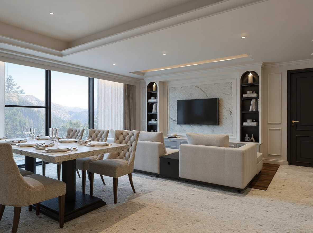 north woods natural landscaping large scale stone exterior standing seam metal roof paved driveway flagstone patios on the sides of the home natural grass where green all exterior doors and windows in pella portobello cladding