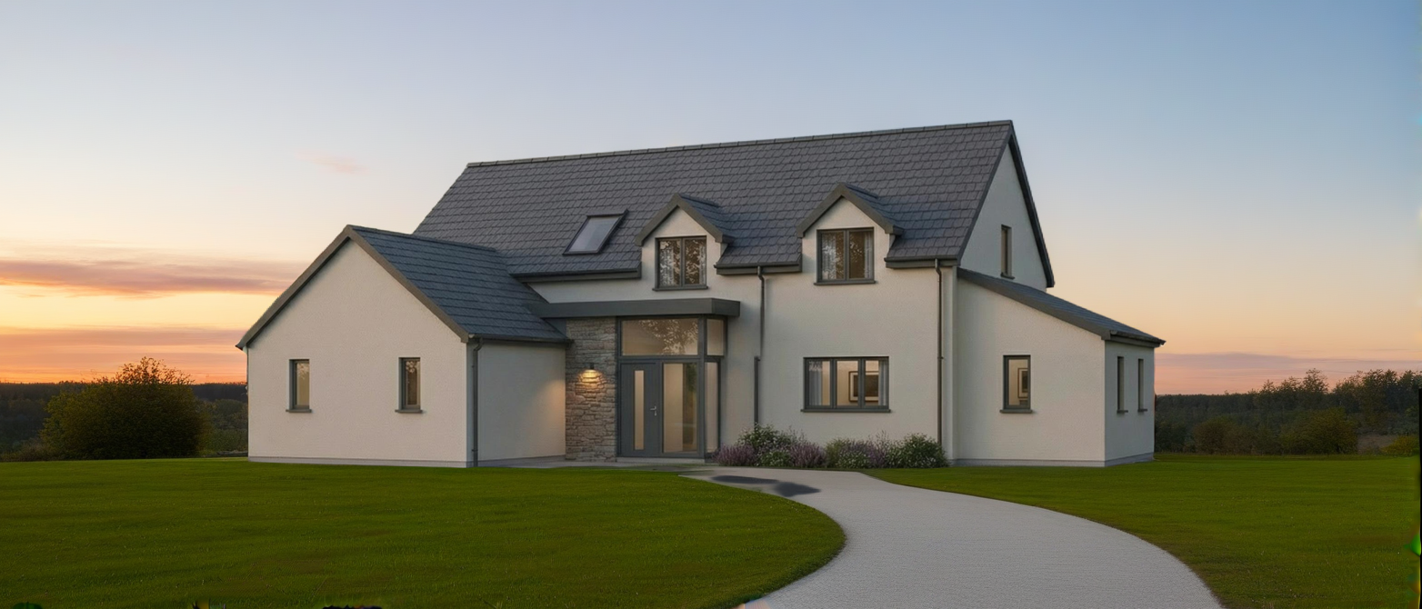 a tarmac driveway in front of the property add a porsche grey car remove grass more tarmac