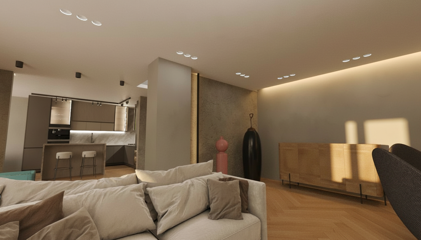 strict camera match material realism locked no redesign create an ultra high end photorealistic architectural bathroom interior render based strictly on the uploaded reference image the complete spatial layout architecture dimensions proportions ceiling height niche geometry cabinetry glass partition shower zone vanity composition mirror placement circulation camera position viewing angle lens feeling framing and perspective must remain 100 identical to the reference image this is a material lighting and realism upgrade only no redesign no reinterpretation no repositioning no camera change treat the reference image as a camera matched architectural backplate camera composition absolute lock camera position must be identical to the reference same height same distance same crop same framing same lens feeling 24 28mm full frame same horizon line and vanishing points same foreground midground background relation perfect verticals no distortion no zoom no pan no rotation no reframe architecture fixed elements keep all walls floor ceiling niches shower zone glass partition vanity drawers mirror cabinet column unit door drainage shelves and fittings exactly as in the reference image no geometry changes no depth changes no alignment changes shower glass only as shown no added door drain shape identical all radii and rounded edges must remain and be clearly readable mirror cabinet seam must be visible back wall behind basin and mirror must be perfectly flush same plane no step walls floor ceiling door all walls shower walls floor ceiling and door finished in beige mortex including the entire shower area walls seamless application subtle tonal movement micro texture and hand troweled depth matte but not flat no visible tiling no concrete look ceiling spots painted in the same mortex color must emit visible realistic light beams cabinetry built in elements all cabinetry in mortex beige column cabinet in mortex vanity cabinet in mortex shower niche structure in mortex shower niche shelves in mortex important the integrated recessed handle must remain 100 identical in shape position and proportion no redesign of fronts no new lines no simplification stone surfaces strictly limited only the following elements are stone vanity worktop travertino classico back wall behind basin mirror travertino classico only the back panel inside the shower niche travertino classico no other shower walls in stone stone properties satin honed finish correct vein scale subtle pore structure soft reflections no gloss no harsh contrast natural variation sanitary metals all tapware shower head hand shower mixers controls and accessories in brushed bronze warm metallic tone subtle anisotropy physically correct reflections no chrome look no plastic shine sink satin lacquered same color as mortex soft reflection ceramic feel radiator in mirror reflection mortex painted same color as walls high vertical model glass mirror shower partition clear glass frame lacquered in same color as walls real thickness soft edge reflections mirror mirror cabinet vertical seam visible realistic depth correct reflection behavior mirror reflection must show a mortex wall and mortex painted high radiator lighting architectural functional ceiling spots must emit visible warm neutral light realistic light cones correct falloff soft shadows shower niche vertical led on the right side full height soft indirect glow reveals stone texture no decorative dead lights lighting must sculpt surfaces and reveal microstructure accessories broken white towel placed on the vanity worktop left of basin rattan mat on floor in front of vanity width of lower column cabinet white bath slippers placed on the mat keep all sanitary elements identical to reference material realism finish control critical mortex soft mineral diffusion subtle tonal clouds micro relief matte but alive no concrete look no repetition travertine satin reflections visible pores grazing highlights no polish no blur metals bronze warm hue shift brushed directionality correct fresnel soft highlights sink lacquered soft satin sheen no mirror reflection no plastic look glass mirror correct ior natural reflections realistic edge behavior render quality ultra photorealistic 4k pbr correct roughness micro detail accurate gi no ai smoothness no over sharpening atmosphere warm calm architectural spa like high end residential bathroom soft controlled lighting serene and timeless negative prompt cgi look illustration sketch style flat lighting harsh shadows concrete look tiled walls wrong mortex tone wrong stone glossy stone fake travertine chrome plastic materials incorrect handle changed cabinetry extra elements missing seam wrong camera different angle distortion clutter people blur low detail texture repetition led under mirror
