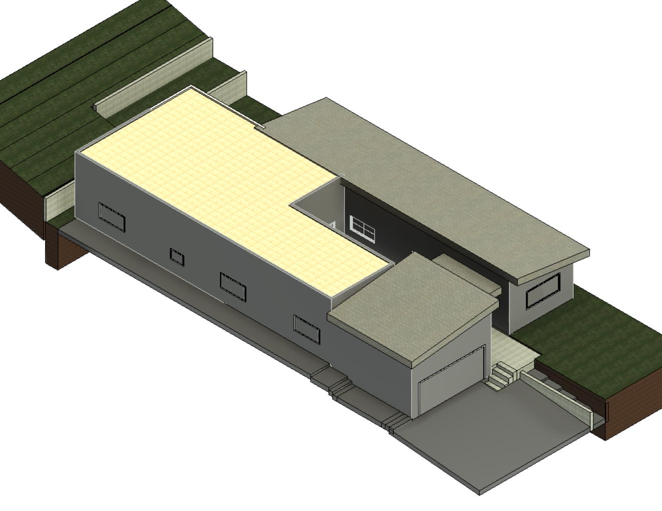 render the sloped roof area above the large door the same as the black asphalt shingle