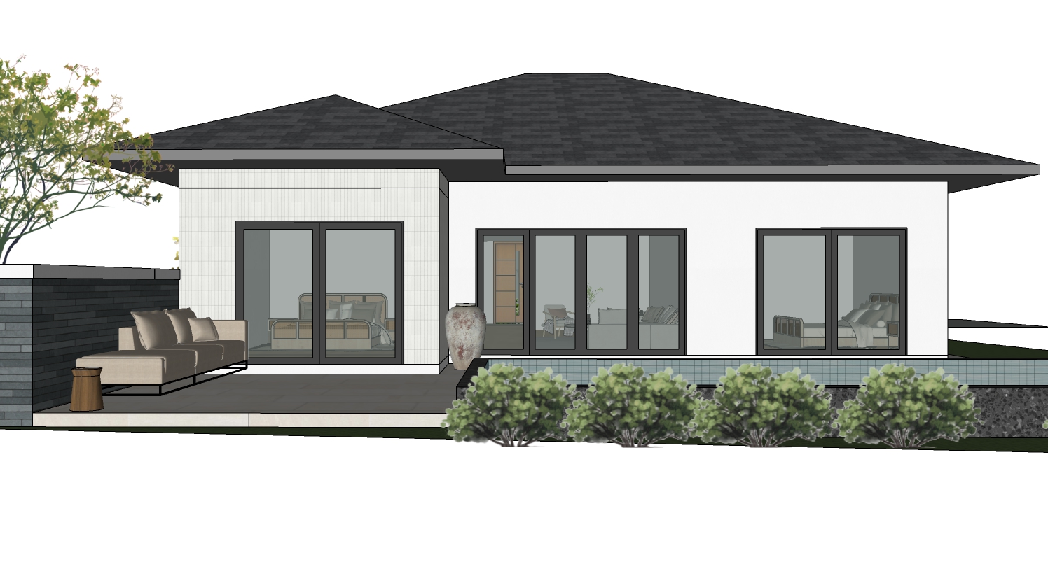 landscape tropical garden with manicured bushes and palm trees atmosphere serene luxurious eco conscious lighting natural daylight soft shadows color palette neutral tones white beige wood brown soft green add interior lighting