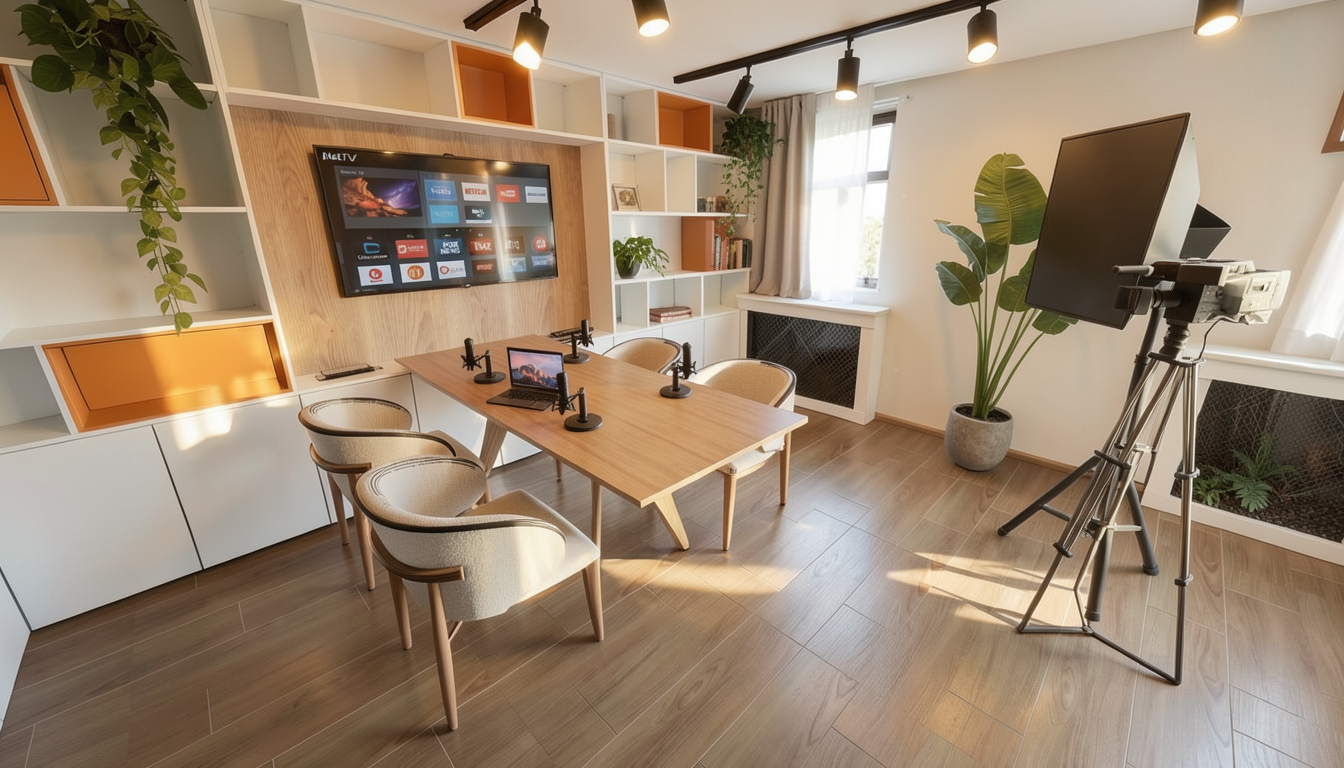 japandi living room interior low beige fabric sofa round solid oak coffee table floating oak tv cabinet vertical wood slat feature wall warm neutral palette light oak flooring soft linen curtains paper floor lamp indirect warm led lighting minimal decor handmade ceramic vases textured rug in warm grey calm zen aesthetic soft daylight architectural visualization style