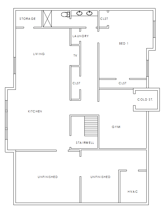 please render and shade this basement floor plan but do not add furniture of any kind