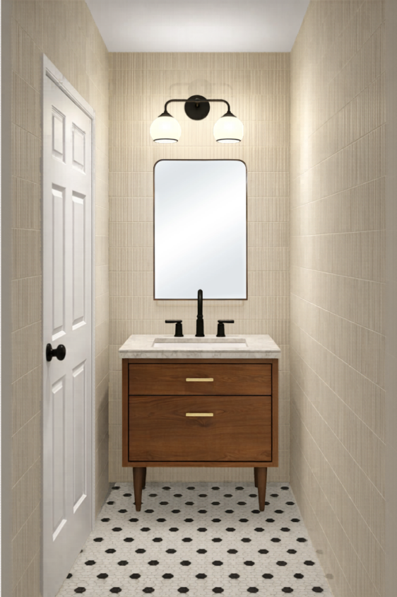 create a realistic rendering of this bathroom add bathroom decor and a hand towel