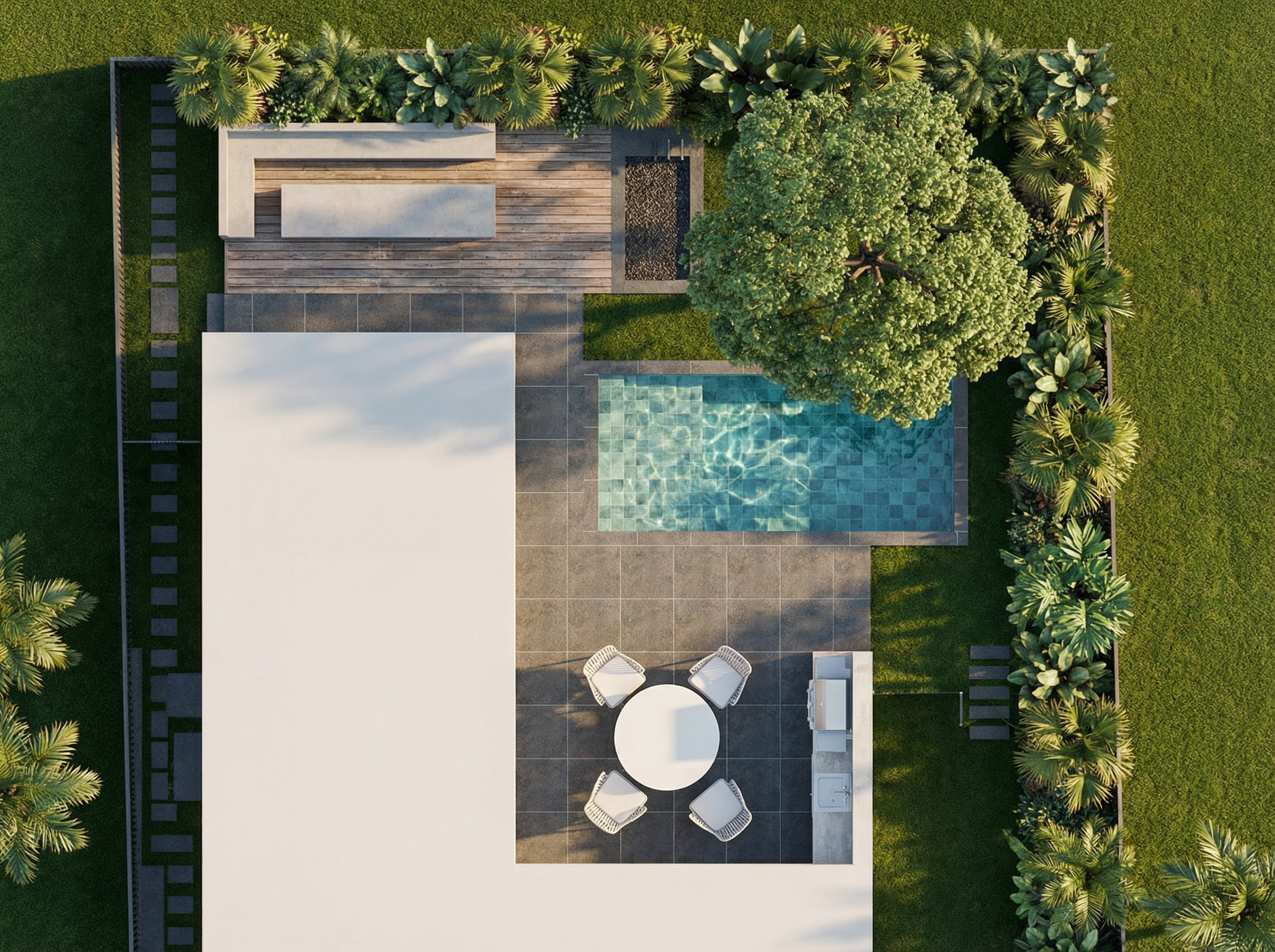 the rendering you generated definitely improved the grounding of the cabinets and created a nice built in feel but you are completely right the ai generator completely flattened your ceiling and removed the beams which stripped away the architectural character of the space it also ignored the vertical tile orientation and kept the cluttered pendant to fix the design issues softening the geometry fixing the horizontal grid effect and removing the visual clutter in the center while strictly preserving your sloped ceiling and beams we need to give archsynth very explicit instructions about the architecture versus the millwork here is an updated prompt that forces the ai to keep the sloped ceiling while applying the design improvements updated prompt for archsynth photorealistic 3d interior elevation of a modern luxury double sink bathroom vanity critical architecture to keep the ceiling must be an asymmetrical sloped vaulted ceiling that drops down on the left side the ceiling and side walls are painted a soft warm taupe there are 5 equally spaced medium oak exposed wood beams running across the sloped ceiling millwork alcove below the ceiling symmetrical custom millwork two tall 16 deep medium oak linen cabinets flank a 22 deep floating medium oak vanity 12 flat panel drawers 10 waterfall dolomite stone apron 4 shadowed toe kick 34 counter height a horizontal soft warm taupe soffit bridges exactly between the tops of the two tall cabinets important leave the wall space above this soffit open so the sloped ceiling and beams remain fully visible design improvements backsplash is dolomite stone soft muted white cool neutral cut into 24 x48 tiles and laid in a vertical stack pattern to contrast the horizontal drawers to soften the geometry use two tall arched top mirrors with very thin matte black frames lighting three exact matte black wall sconces from the original sketch mounted on the stone to fix visual clutter replace the heavy center chandelier with a minimalist airy matte black linear pendant suspended high up near the beams so it does not visually overlap with the mirrors or sconces 4 recessed downlights in the taupe soffit camera straight on elevation 16 9 cinematic photoreal 2700k warm lighting lower crop to clearly show warm grey large format floor tiles