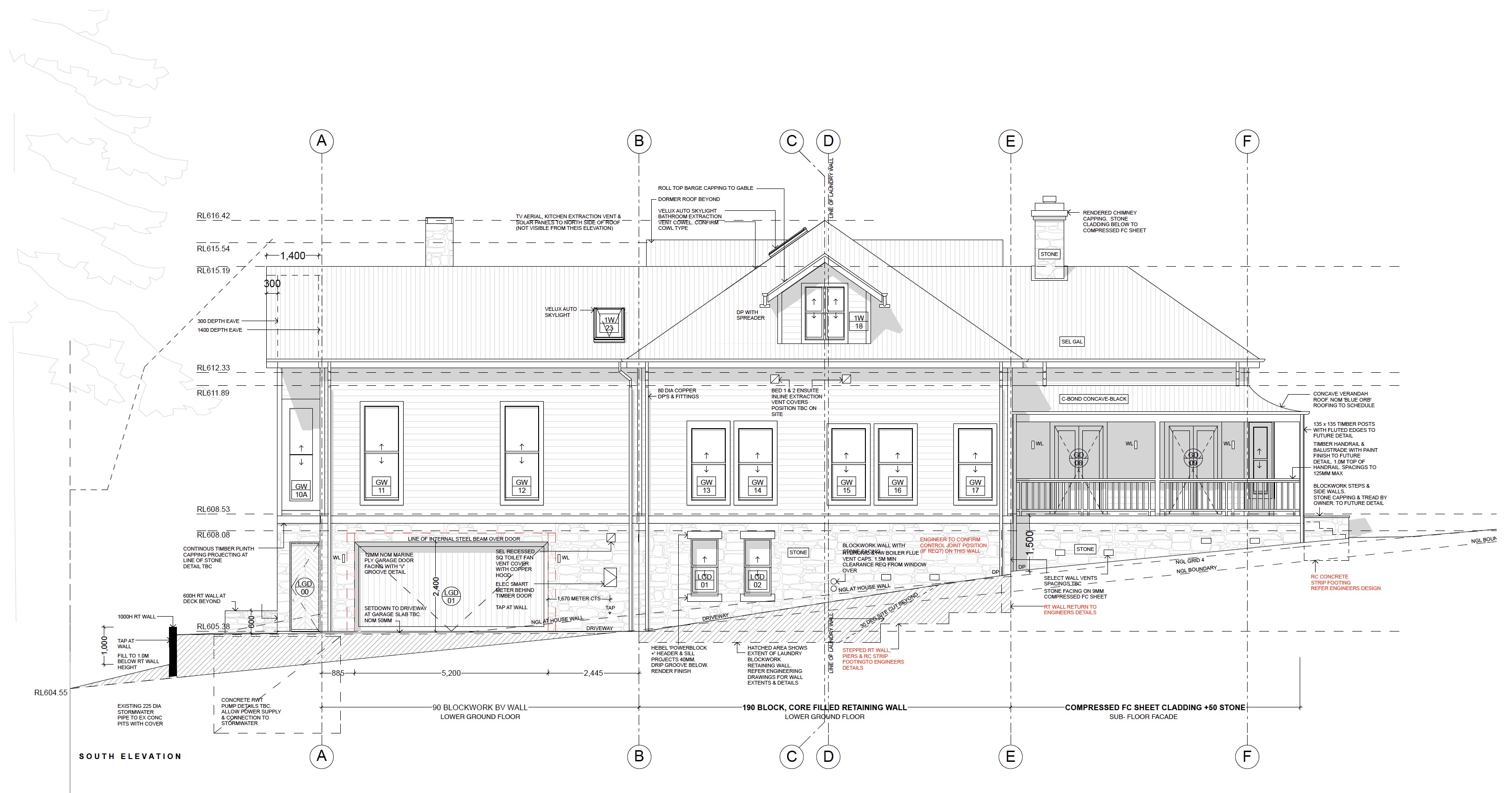 use the original elevation only white wash timber weatherboard sandstone to ground floor walls copper gutters and downpipes white window trims silver galvanised sheet roof and verandah roof low height 400mm box hedges along the sloping driveway dont change roofline or add any new windows or features