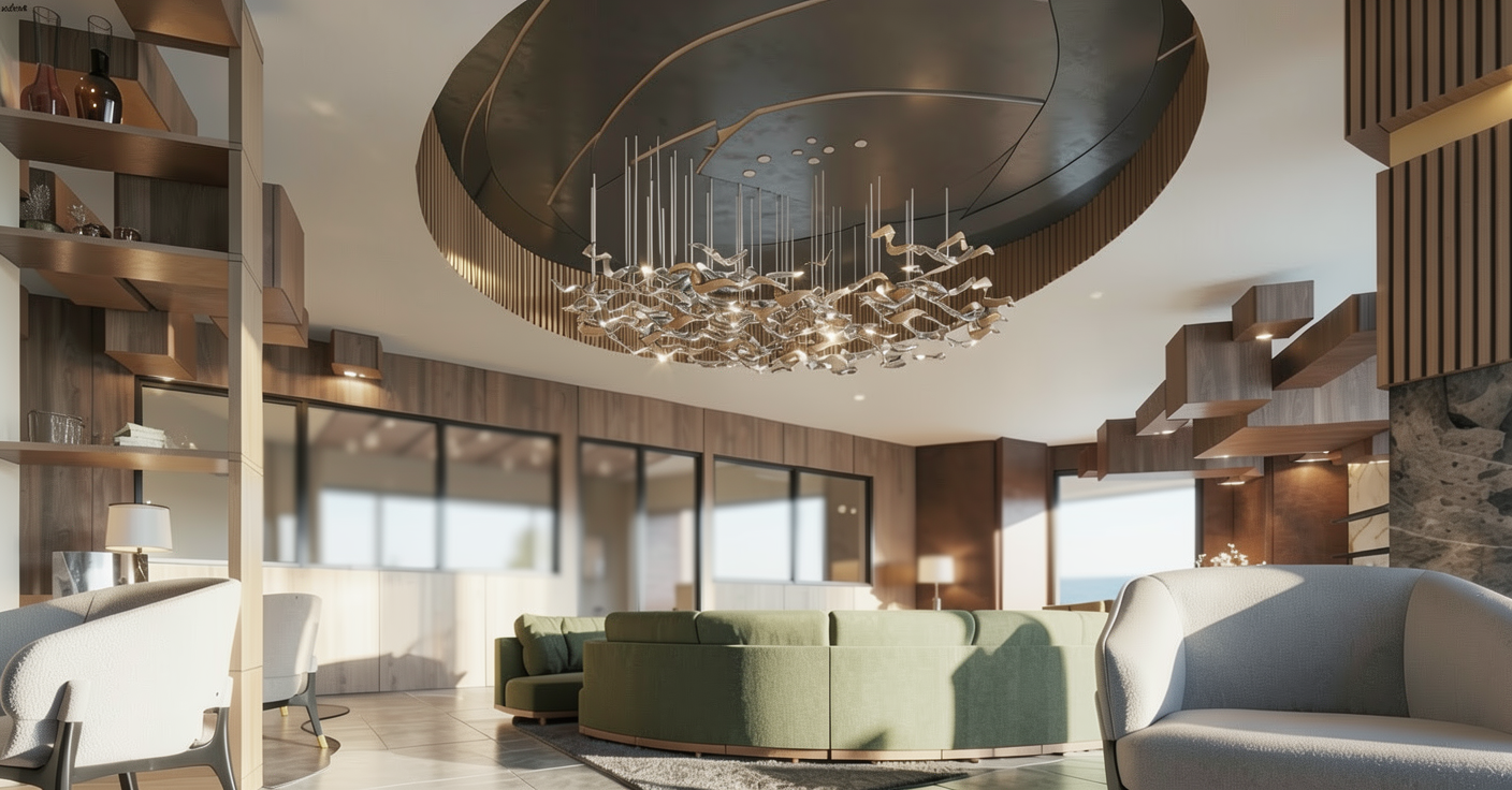 dress the kitchen photorealistic render natural lighting do not add handles to the doors the trim detail under the countertop is oak