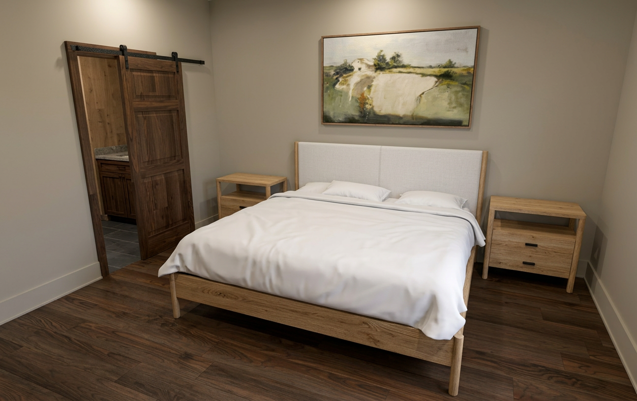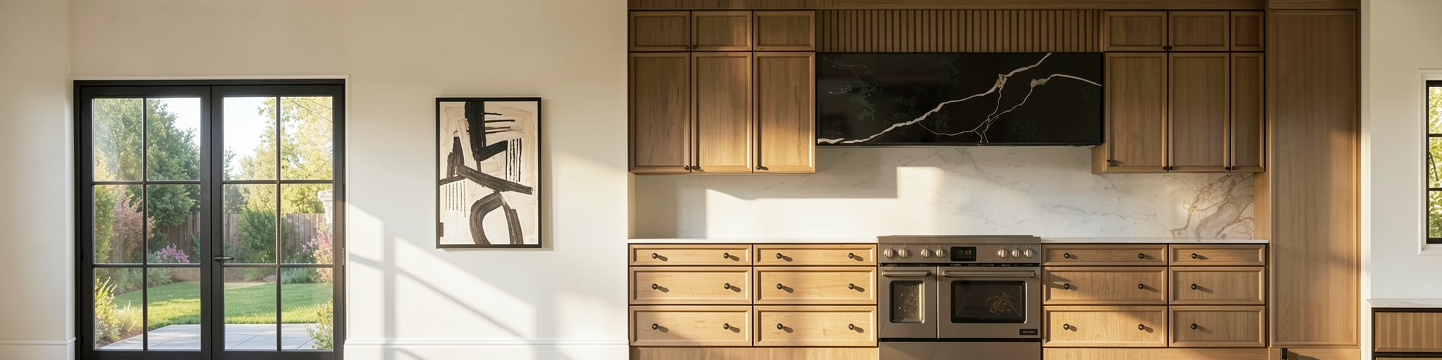 create an hdri photo realistic rendering from my image do not change any image details do not move or modify features keep the colors the same make the rendering photo realistic with 4k resolution add natural sunlight facing cabinetry