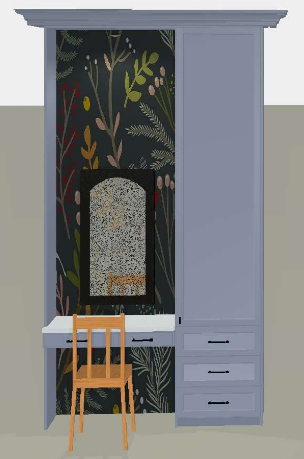 show me a photorealistic rendering of this drawing make the mirror frame gold