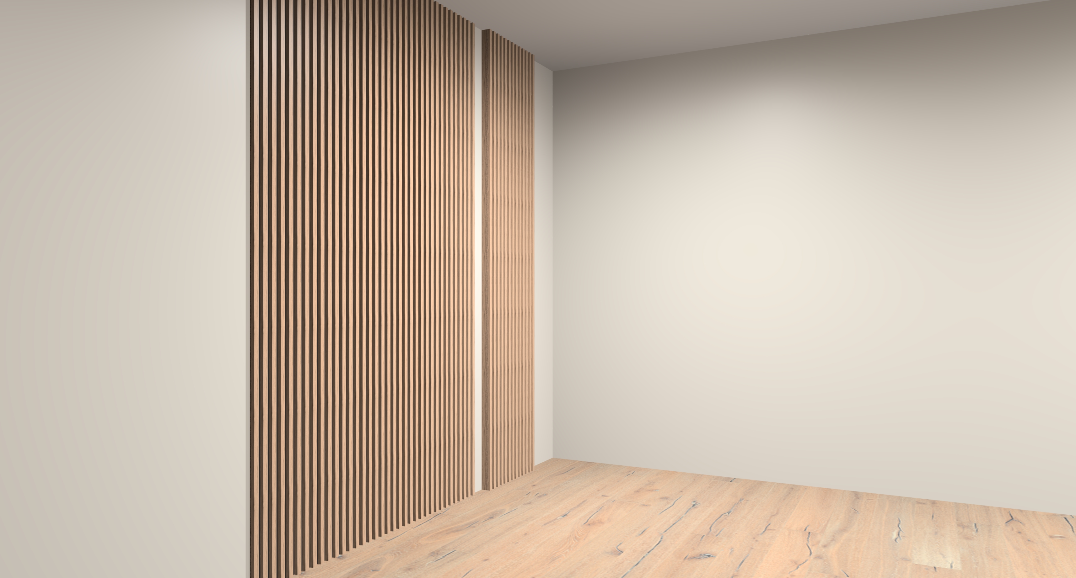 entrada con paneles alistonados de diferente profundidad
