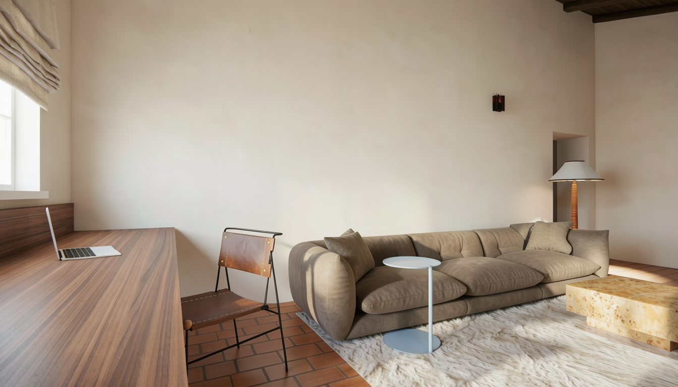 evening sun in window with wall lights on beside mirror mirror is led mirror