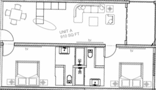 convert this floor plan into a realistic isometric 3d view of a full house show the space from an elevated angle with furniture walls and details visible create a detailed 3d rendering of an architectural floor plan use warm earthy tones like soft beige for the walls and rich mahogany for wooden elements incorporate sleek modern furniture with natural textures for the kitchen use stainless steel accents and a marble countertop in shades of light gray decorate the living room with plush dark green sofas and a glass coffee table the bedroom features a cozy atmosphere with soft blue bedding and muted gold light fixtures add a lush garden outside with vibrant green foliage and colorful flowers capture the scene in bright natural sunlight enhancing the serene and inviting atmosphere use the same furniture as shows on the plan do not change the orientation of the floorplan