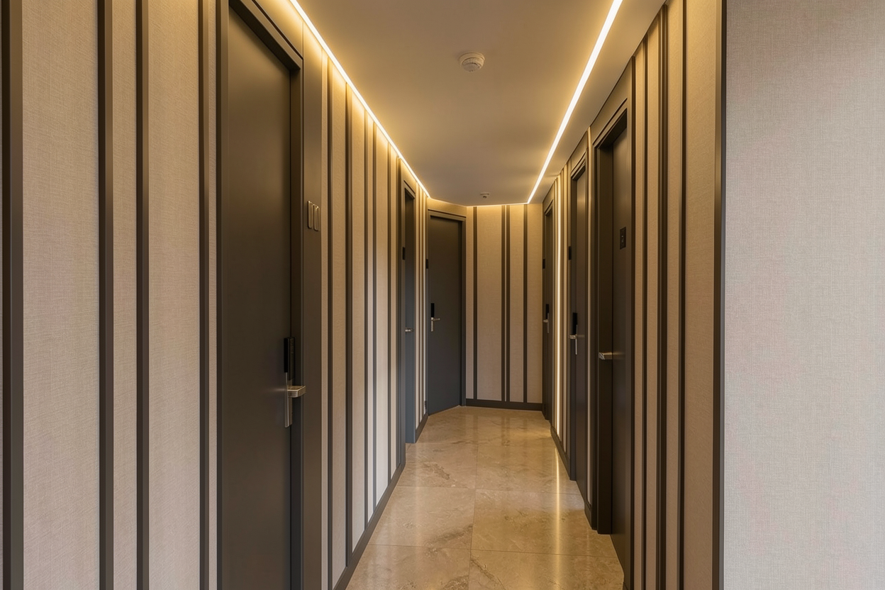 give this image a ceileing and lighting to fit