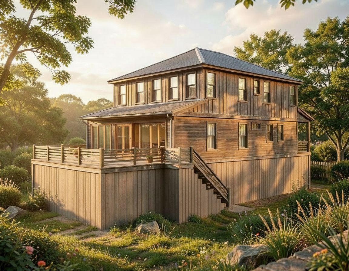 the house should have a white exterior with a silver metal roof and palm trees should be placed so that they do not overly block the view