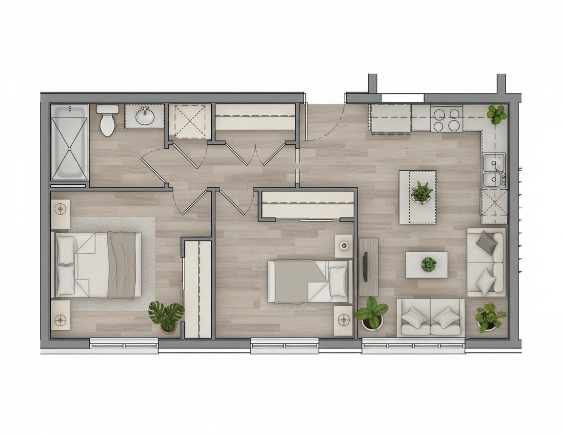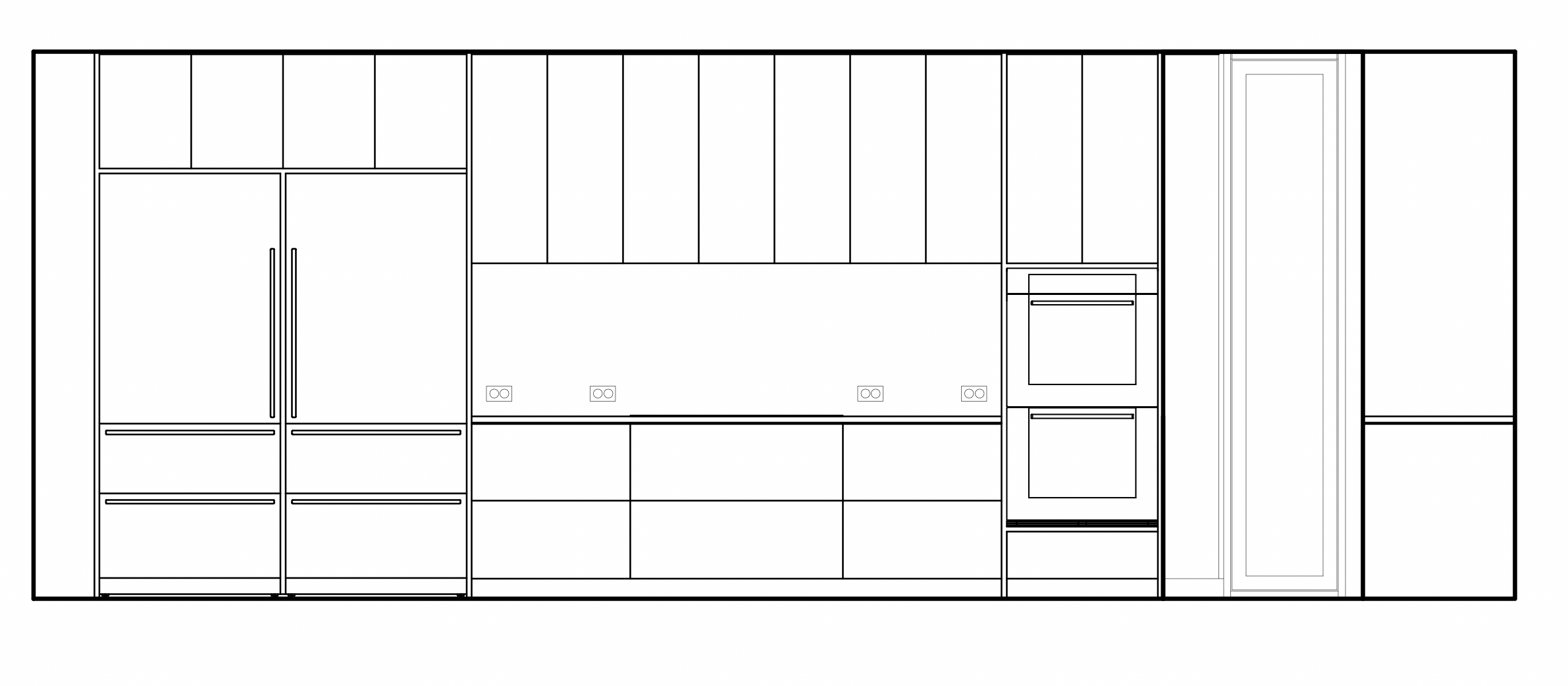 serene and natural kitchen wall looking into pantry beyond in the vermont mountain side cabinets are ash vertical grain with a natural stain countertop is a white gray marble with a full height backsplash over under panel ready refrigerator freezer double stacked ovens stainless steel 42 in induction cooktop with hidden hood stainless steel potfiller hidden integrated pulls on cabinetry wide and long plank ash floor natural stain