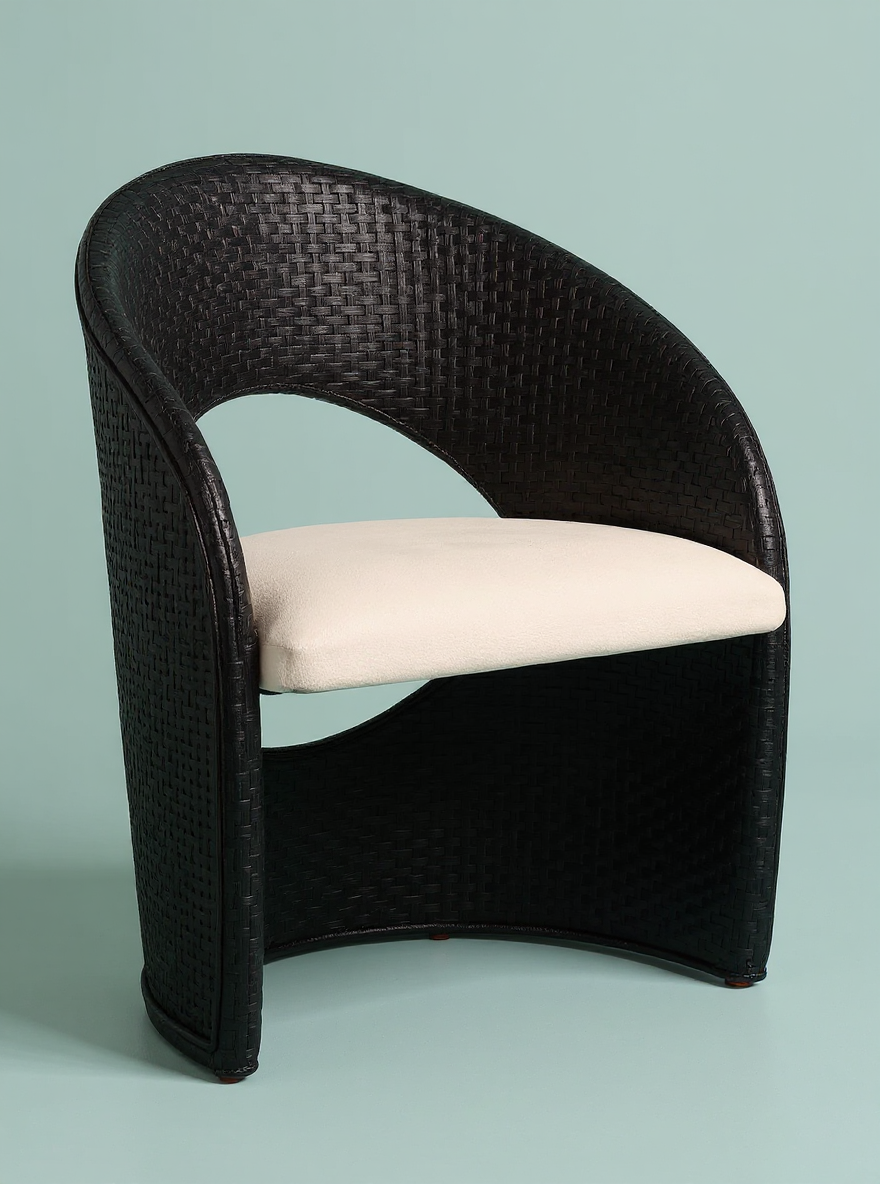 weaving shades of green brown and yellow brown combination upholstered white seat and back