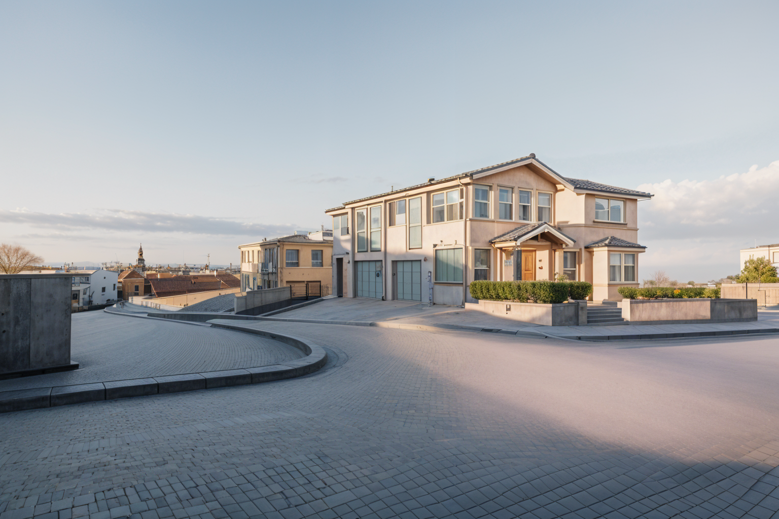 exterior shot walls on ground floor is gray stucco walls on second floor is vertical board and batten siding architecture
