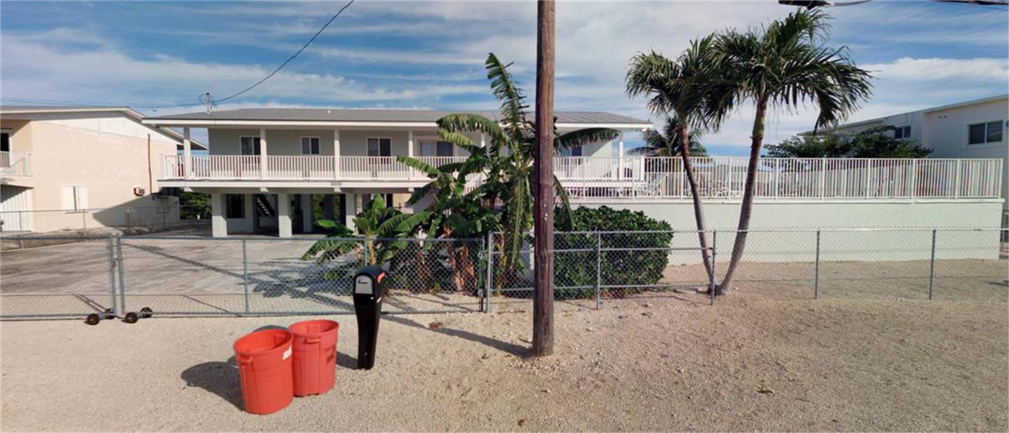 change the color of the exterior of the house and elevated pool deck to aqua blue enhance landscaping remove orange trash cans and electrical pole in front