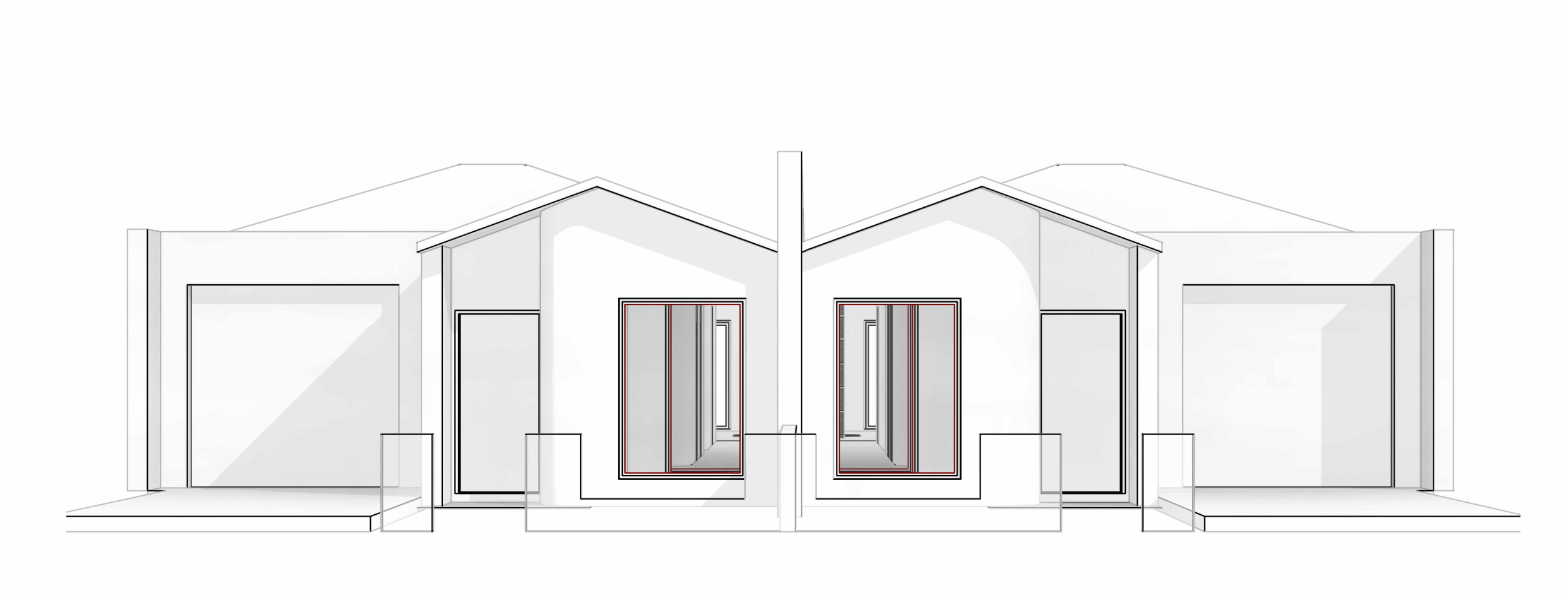 exterior to be a palm springs vibe mirror the same colours split down the middle