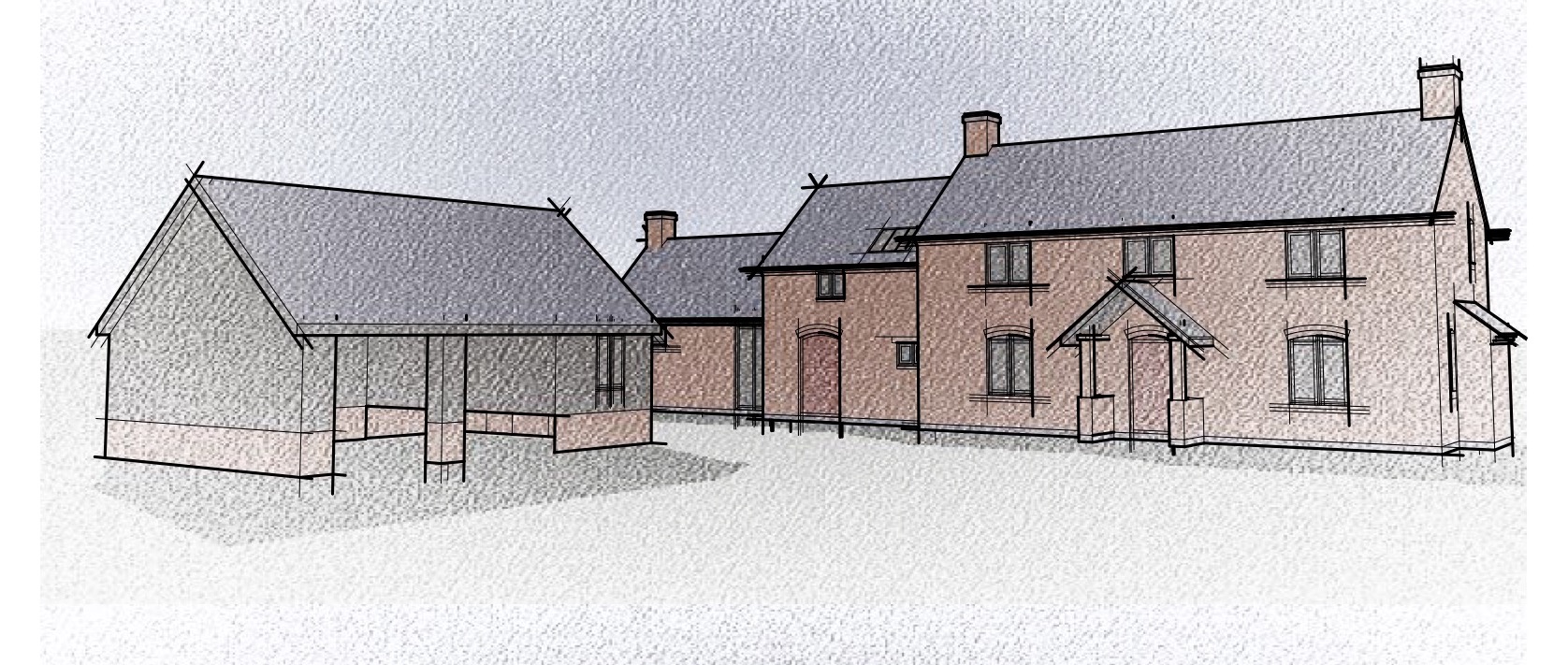 red brickwork slate roof black horizontal cladding gravel drive trees in background bentley car on drive