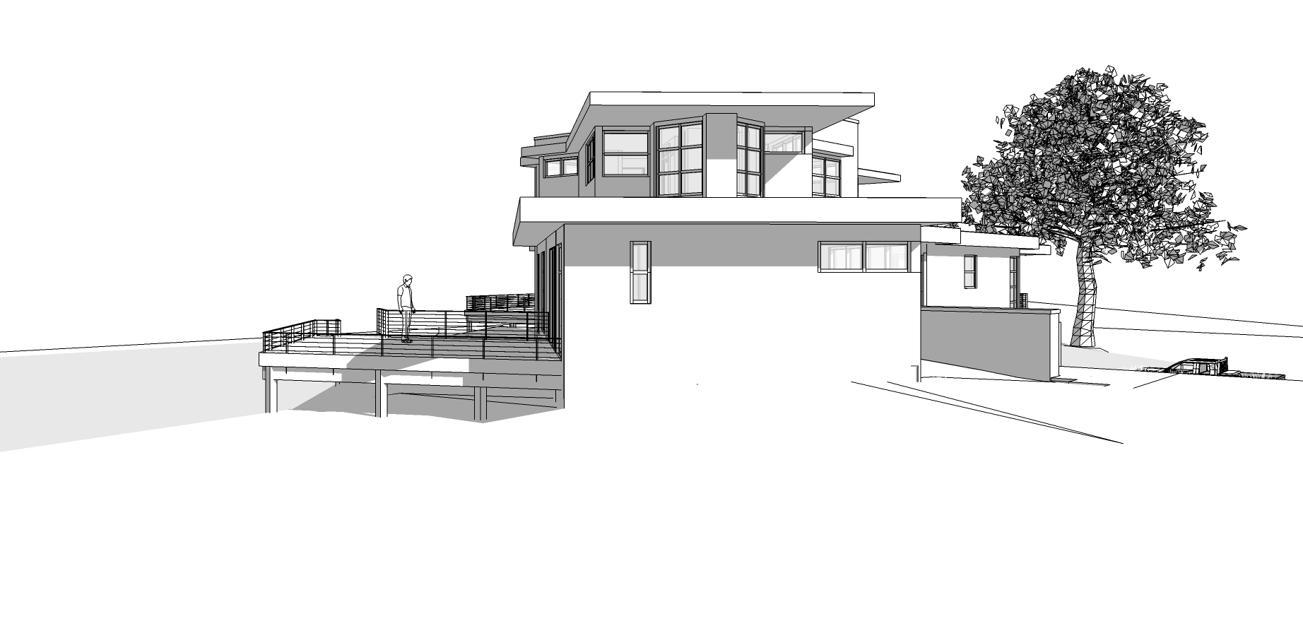 industrial home design vertical dark wood shiplap matte black metal panels black fascia tall grass foreground off the lake fog dusk trees in background