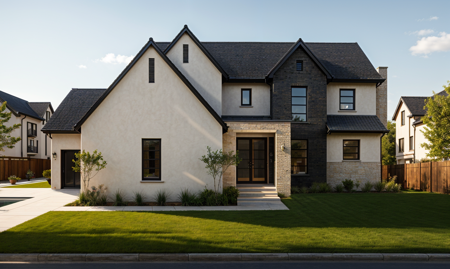 robert a m stern exterior shot a modern five story building with a dynamic wave like facade the structure uses a combination of clear glass and sleek metal panels each floor featuring alternating horizontal and vertical patterns render the building with reflective blue tinted glass windows and light grey aluminum panels the roofline and exterior beams should be a contrasting white set in a vibrant urban setting with a clear blue sky during the golden hour casting warm sunlight and soft shadows add greenery around the base with small trees and shrubs for a lively atmosphere architecture