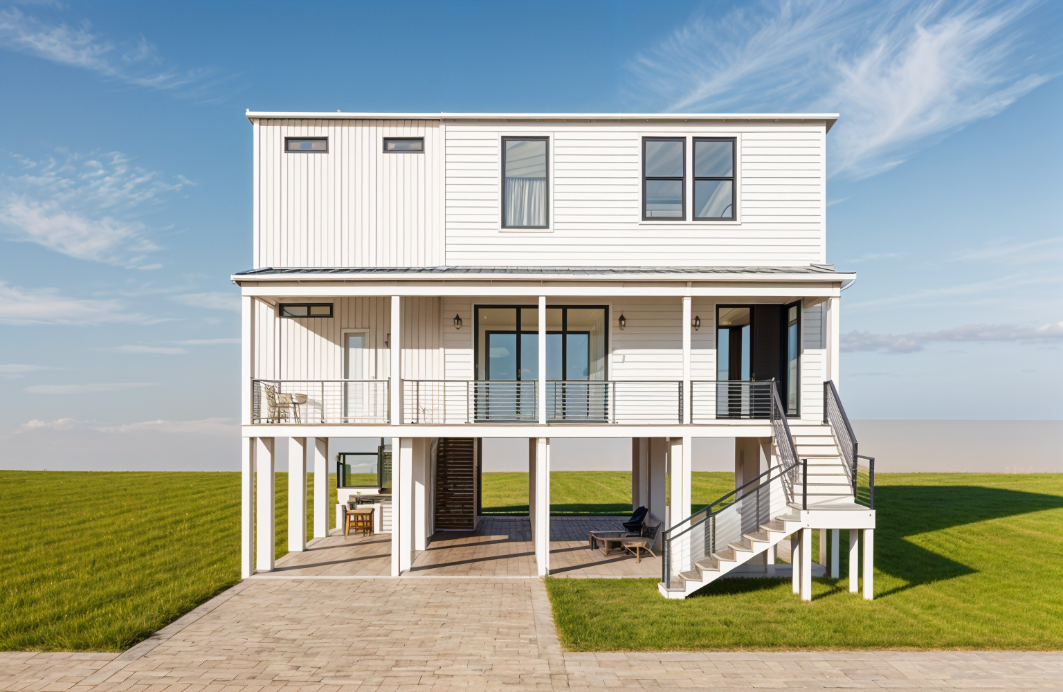 make in a florida tropical scene with pavers driveway home to be white in color