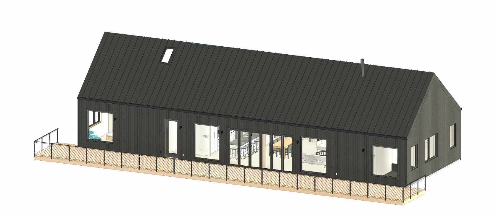 change the roof to a shed roof 16ft on deck side sloping to 10ft on back side of house gable wall made of all glass windows with thin matte black framing set in tropical place all walking pathways made of flat stones