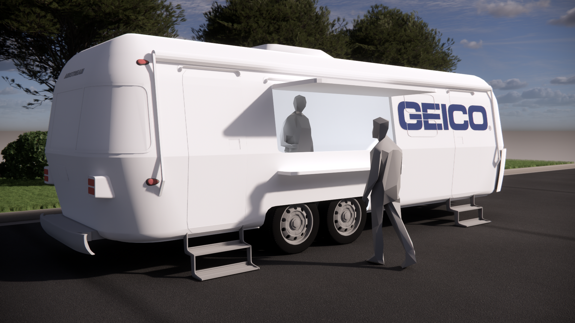 branded airstream with vending window branded for geico brand festival grounds super bowl city architecture