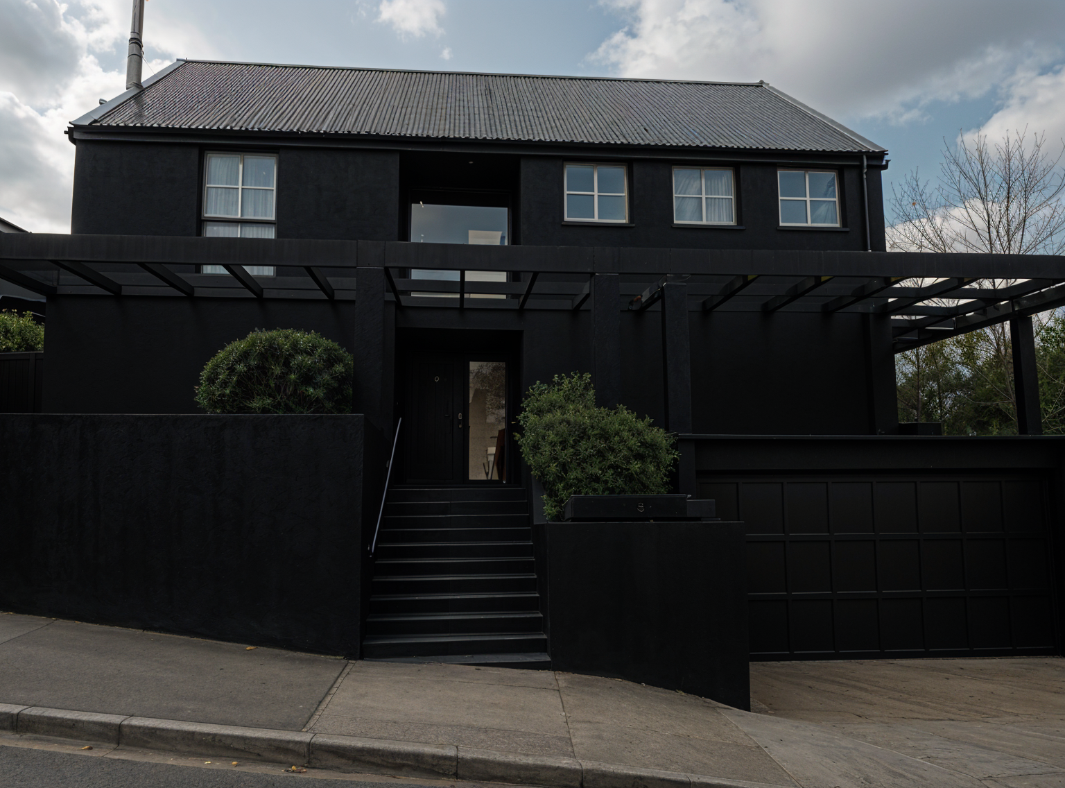 north idaho pine trees in the back ground white vertical board and batten siding throughout asphalt shingle roof