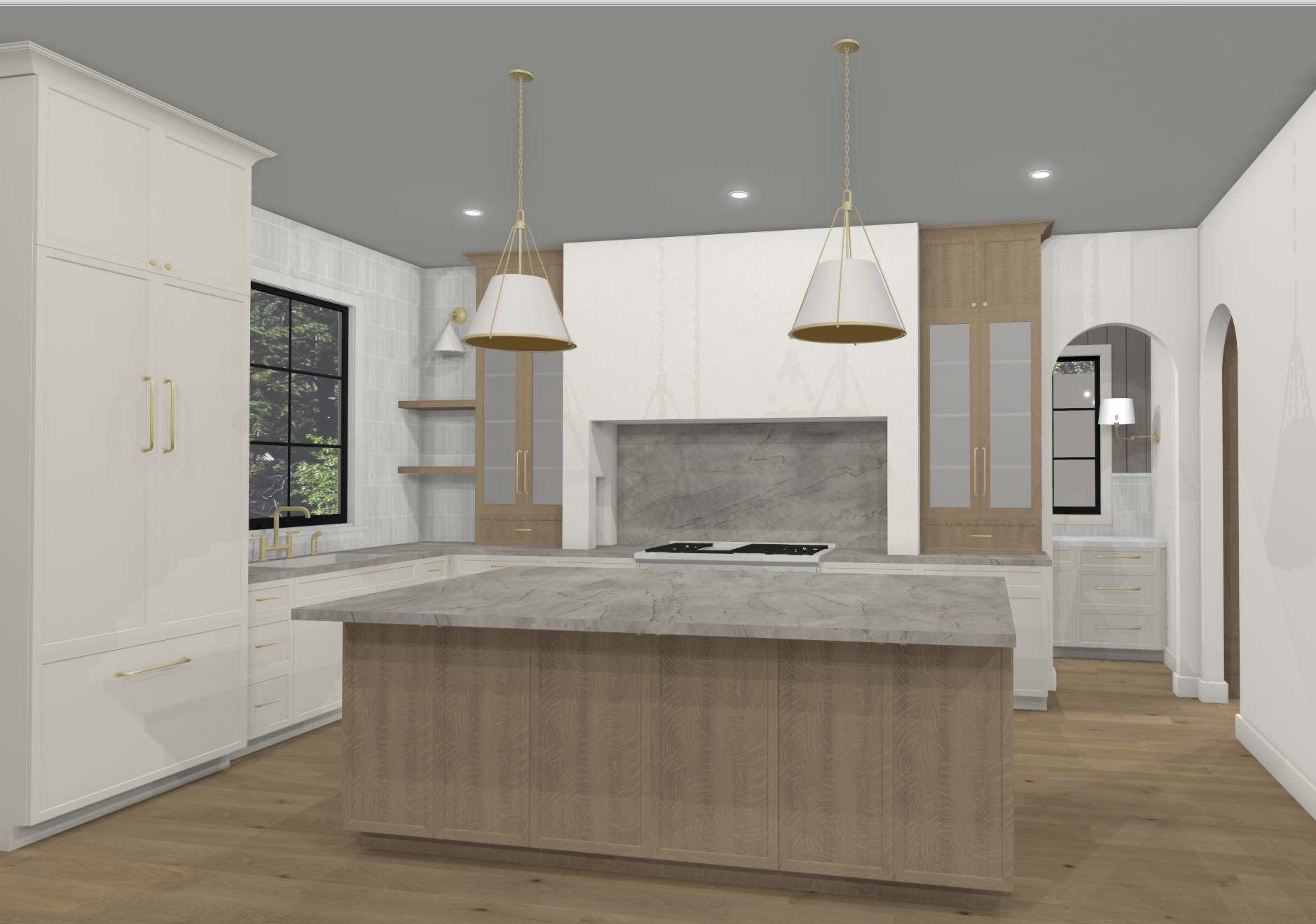 add tape lighting inside the glass cabinets maintain colors simplify wood grain
