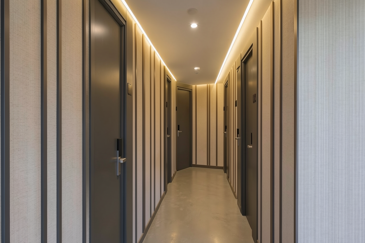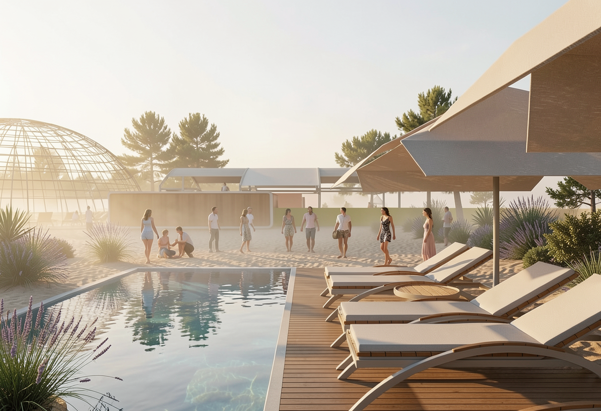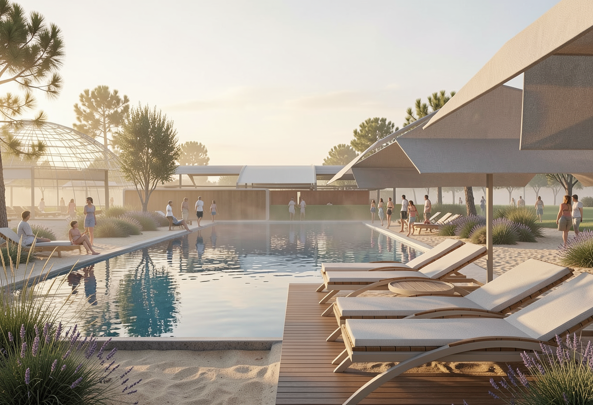 retain the landscape and context the building mass is a simple solid rectangular prism with slightly softened edges and corners allowing the geometry to flow continuously across all faces including corners generate a contemporary facade with continuous horizontal balcony slabs forming a smooth flowing wave pattern each floor plate extends outward into curved ribbon like bands that undulate sinusoidally across the facade the wave pattern should vary subtly from floor to floor creating a dynamic stacked effect with alternating convex and concave curves ensure the geometry wraps around building corners seamlessly use clean white or off white materials smooth concrete or composite panels with thin slab profiles and integrated glass railings recessed within the curves maintain a consistent floor to floor rhythm but introduce slight phase shifts in the wave to create a natural fluid motion across the elevation emphasize soft shadows depth between layers and realistic light reflections on curved surfaces the facade should feel aerodynamic continuous and sculptural rather than segmented ensure high geometric clarity with well defined panel edges smooth curvature transitions and no sharp angular breaks style parametric fluid architecture zaha hadid inspired modern coastal residential tower the ground floor is flushed and has glass facade the parametric facade starts above the glass faacde