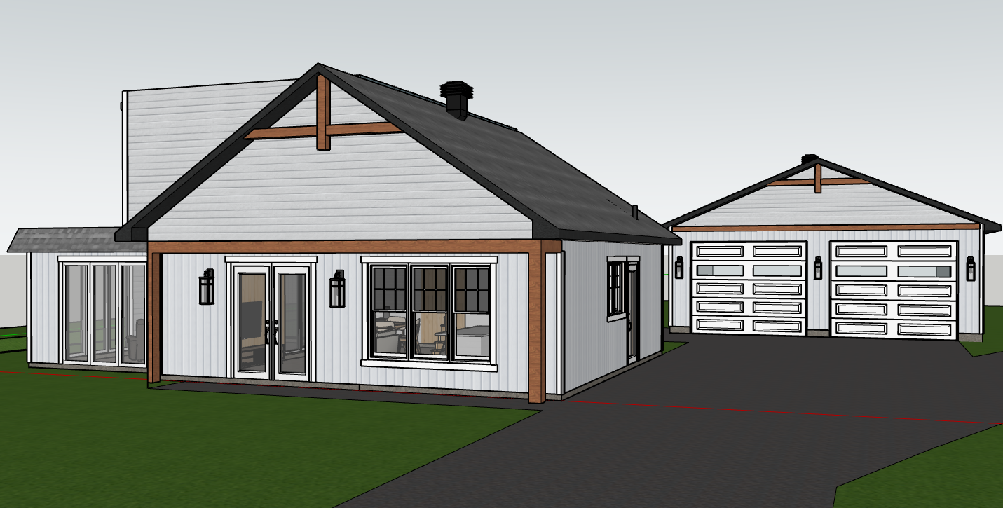 residential white vinyl siding residential white board and batten vinyl white doors and windows wooden beam gray asphalt shingle roofing wooden front door