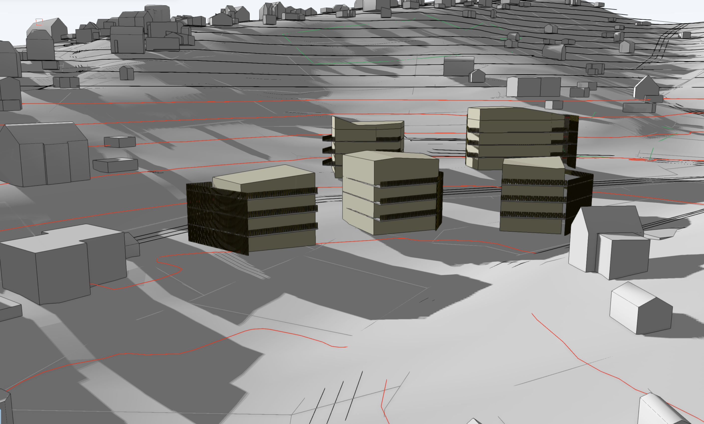 es ist ein bild von einem wohnquartier aus der perspektive im hintergrund der h gel ist absteigend und viele b ume und gr n