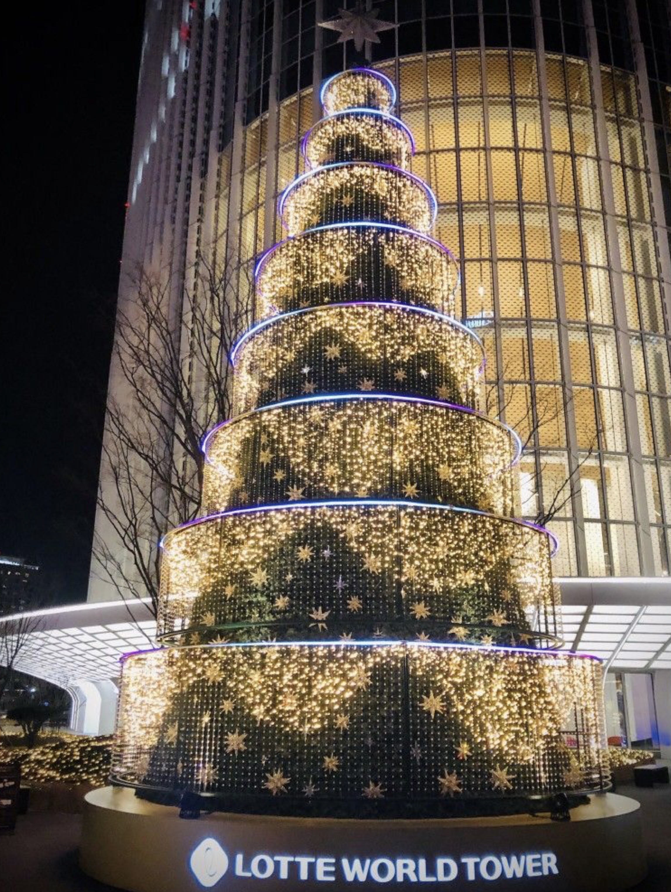 change this christmas tree with red and purple these and add exciting lighting effect such as search light beams flickering lights with the same color lights