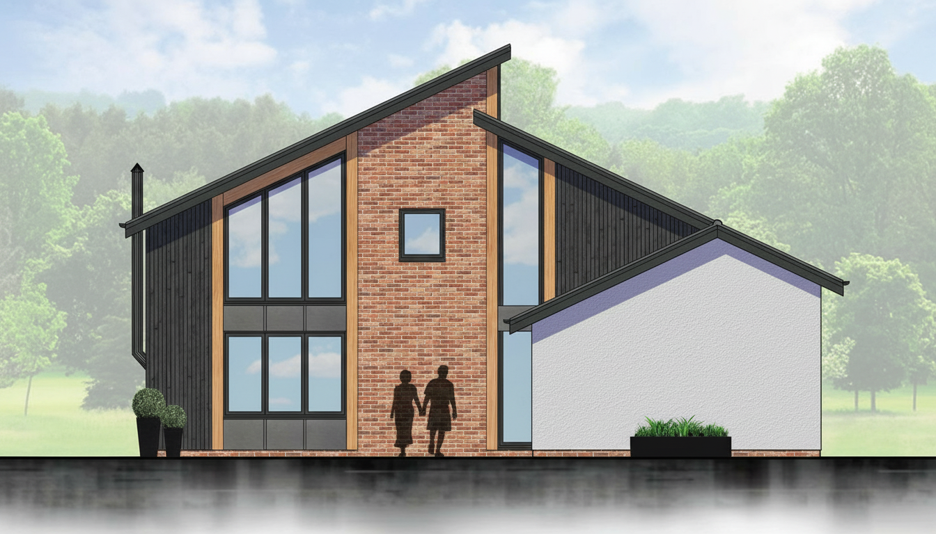 farmhouse red brown roof tiles black cladding and brickwork where shown white windows