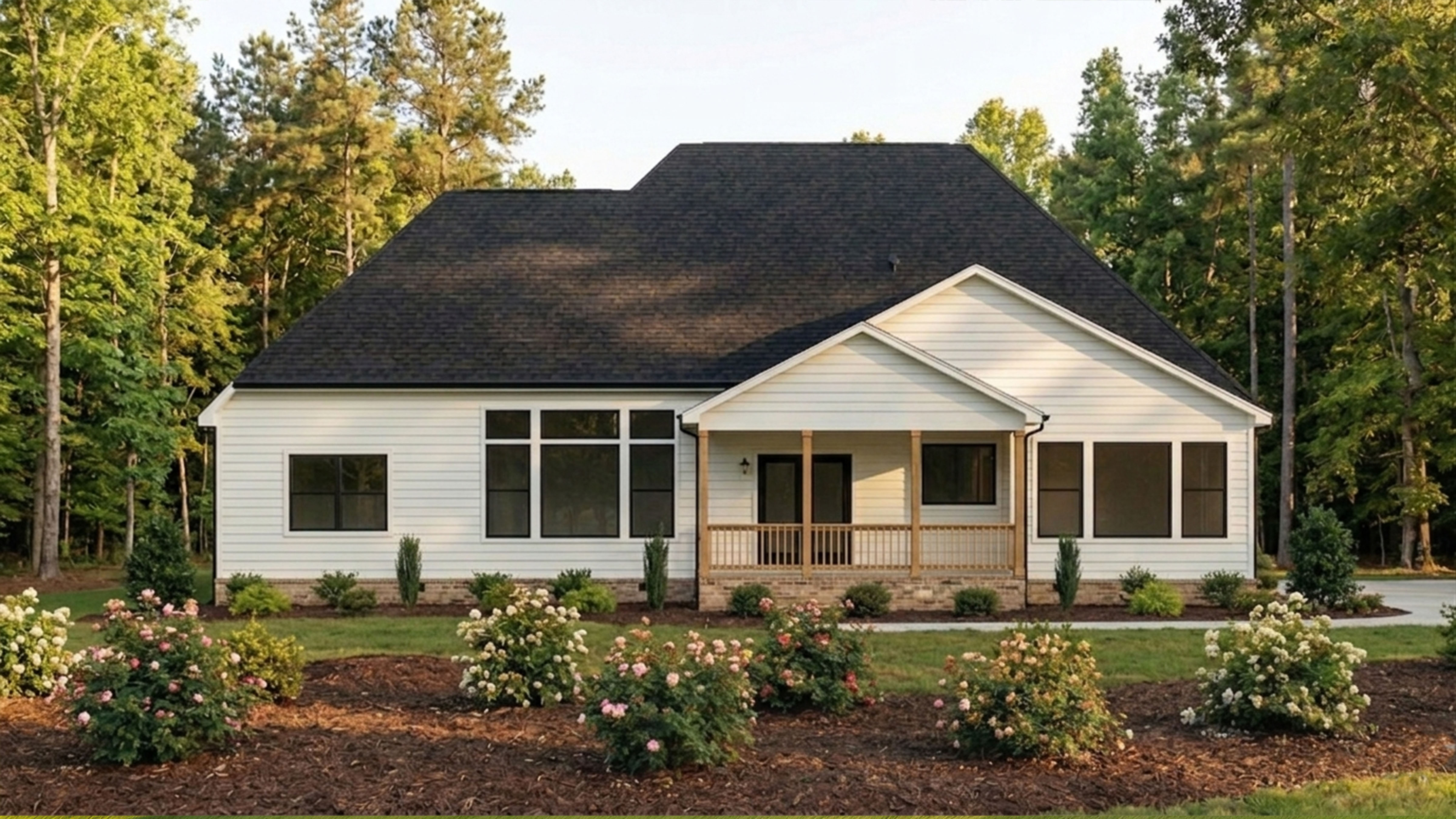 make 16x9 size image turn on porch light to left of door keep sunlight same as shown