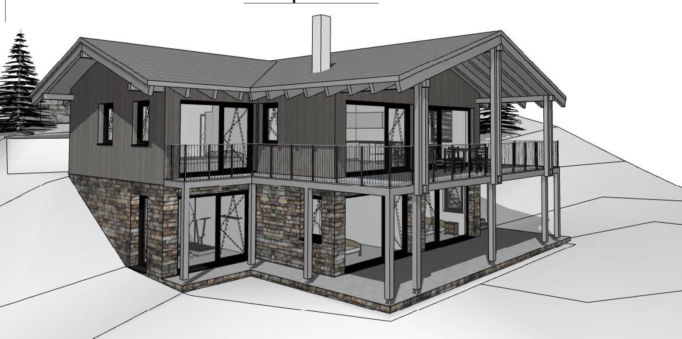 erstelle f r dieses haus eine perspektive von innen gro er wohnraum mit sichtbarer dachschr ge sichtbare balken gro e verglasung an der front