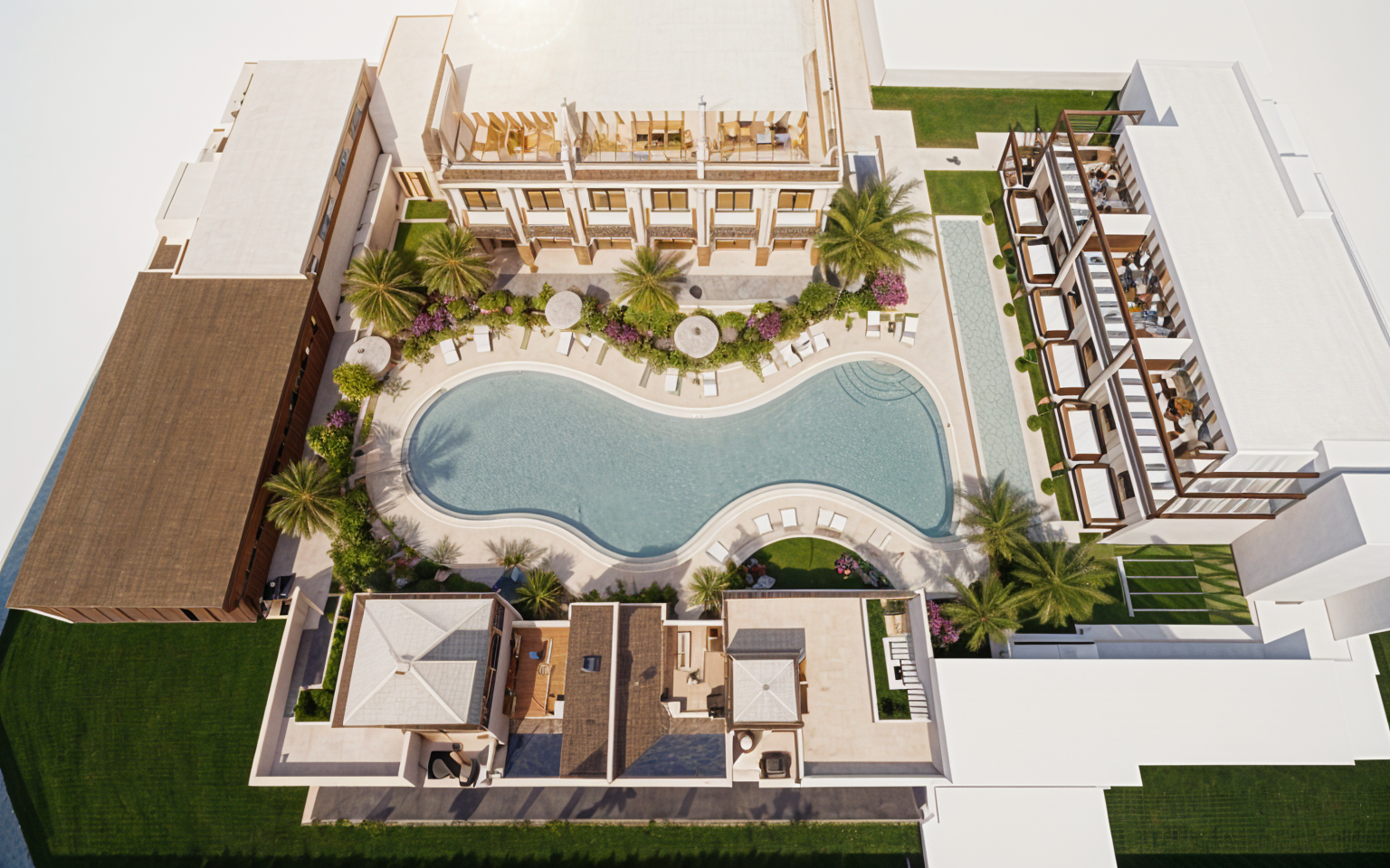make a highly realistic rendering and the portion where the building indents make it glazing material