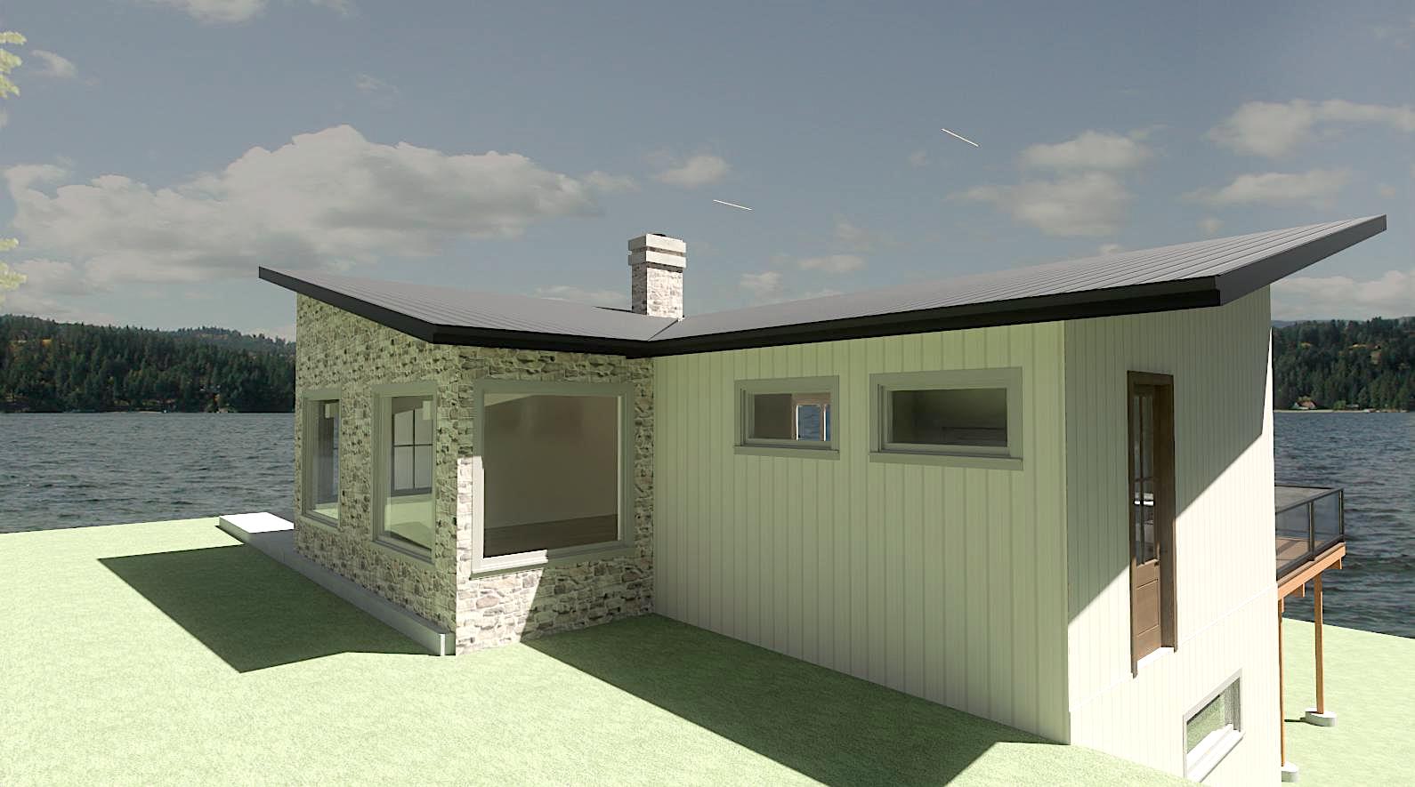make it less animated warm up and make clearer make exterior background look more realistic make board and batten siding cream coloured window and window trim must be a greige colour stone is tuscany rubble by canyon stone