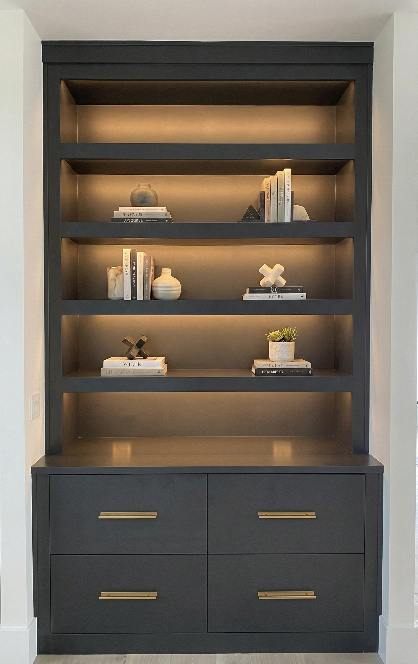 scene description ultra realistic architectural visualization of a modern industrial estate on a corner lot two single story warehouse buildings with clean rectangular forms white precast concrete panel fa ades dark metal trim and brown standing seam metal gable roofs large sectional overhead loading doors and horizontal office windows site layout curved internal asphalt access road connecting both buildings concrete loading aprons at each warehouse one semi truck reversing to a dock one truck parked several employee cars in marked parking bays clearly painted road markings and parking striping landscape design dense mature trees forming a green buffer along one property edge smaller ornamental trees spaced along the internal road maintained grass mulch beds low shrubs concrete curbs and clean site edges materials detail realistic asphalt texture with subtle tire marks light weathering on concrete panels visible roof seams and flashing slight window reflectivity accurate truck and vehicle proportions natural grass variation lighting atmosphere late afternoon golden hour sunlight warm directional light casting long soft shadows realistic sky with light clouds balanced exposure natural color grading camera elevated 3 4 aerial perspective drone view angled downward 35mm lens sharp focus across entire site rendering quality photorealistic ray traced reflections global illumination hdr high resolution architectural marketing render no stylization no cartoon effect